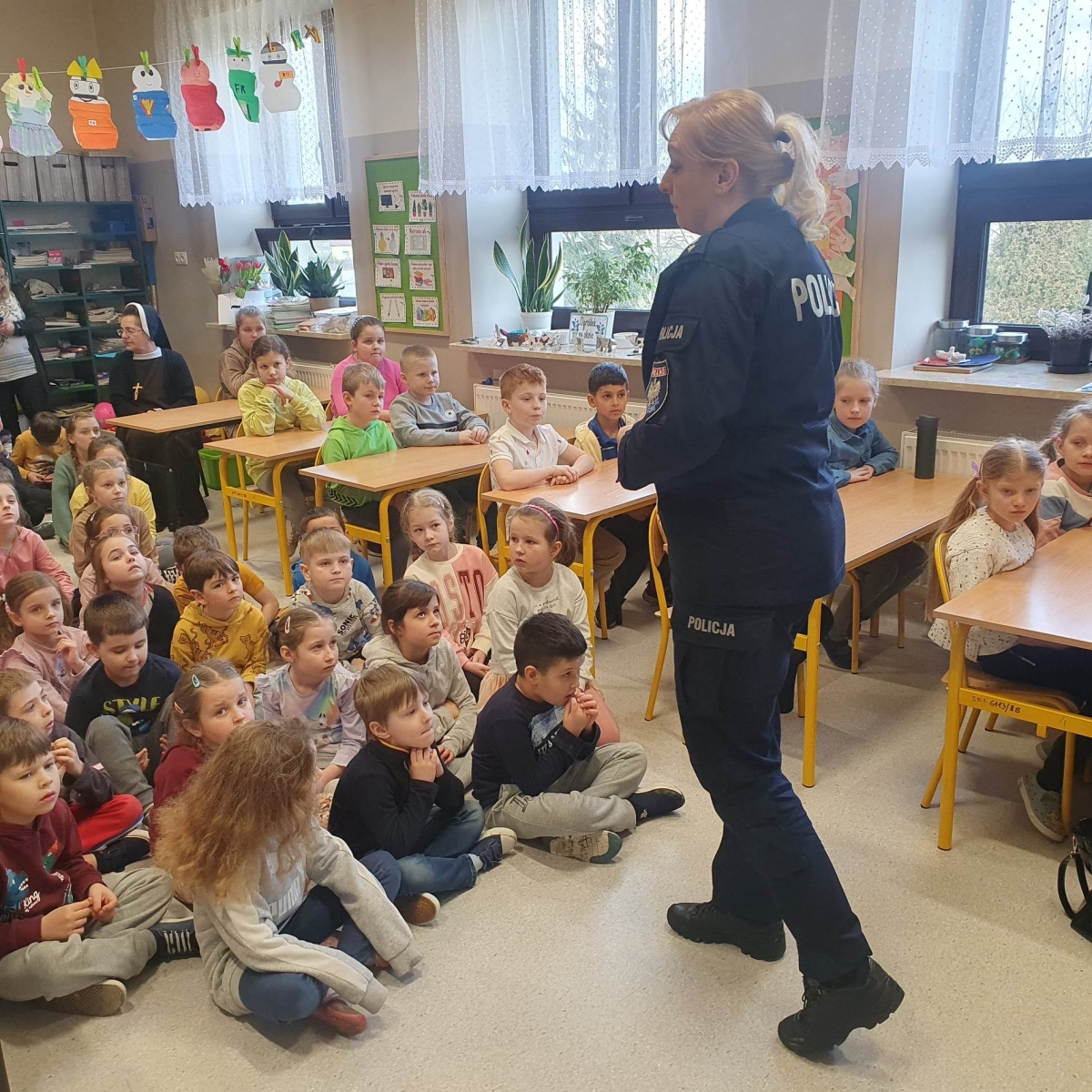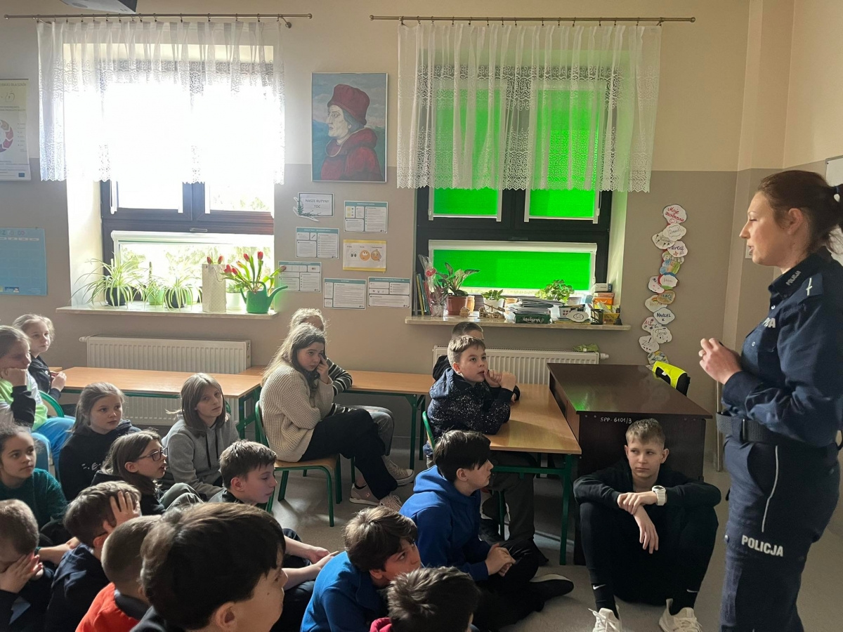 Akcja skierowana jest do dzieci i młodzieży szkolnej, dlatego w spotkaniu uczestniczyli uczniowie klas I - VIII oraz grupy 6-cio latków. Ze względu na zróżnicowanie wiekowe spotkanie przebiegało z podziałem na 3 grupy, w których prelekcje prowadziły Panie Policjantki, przypominając zasady bezpieczeństwa w szkole i poza nią. W starszej grupie wiekowej zostały omówione aspekty prawne dotyczące wykroczeń nieletnich. Policjantki rozmawiały także z dziećmi o podstawowych zasadach bezpieczeństwa w ruchu drogowym, podkreśliły ważną rolę elementów odblaskowych, które każdy uczeń powinien posiadać. Panie przypomniały również zasady, jakie należy stosować w kontaktach z obcymi. Ponadto poruszyły temat cyberprzemocy i skutków, jakie może nieść za sobą niewłaściwe korzystanie z Internetu.