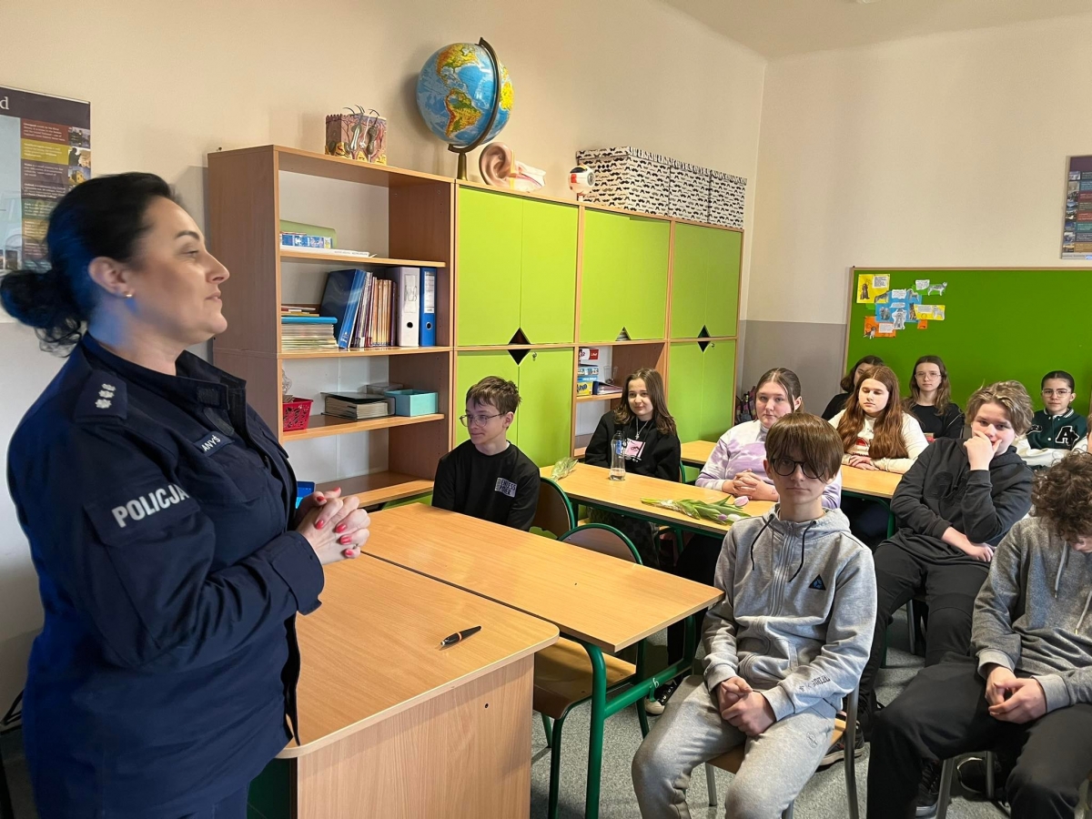 8 marca 2023 r. w naszej szkole odbyło się spotkanie uczniów z Policją w ramach realizacji projektu profilaktycznego „Szkoła Promująca Bezpieczeństwo” w ramach Zintegrowanej Polityki Bezpieczeństwa. Koordynatorem realizacji działań projektowych w naszej szkole jest Pani st. asp. Beata Dulewicz - specjalista ds. profilaktyki Komendy Powiatowej Policji W Krakowie.