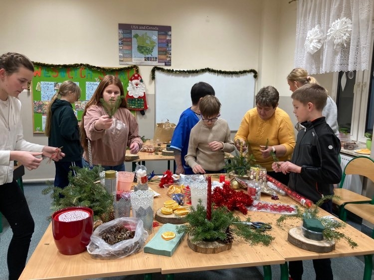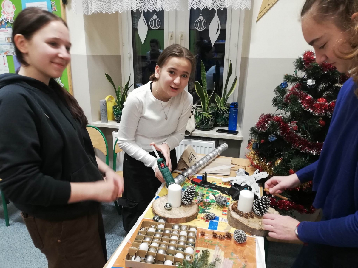 Szkolne Koło Wolontariatu i uczniowie należący do Klub Siedmiu Kontynentów aktywnie włączyli się do akcji przygotowywania Stroików Pachnących Świętami dla podopiecznych Hospicjum im. Św. Łazarza w Krakowie.