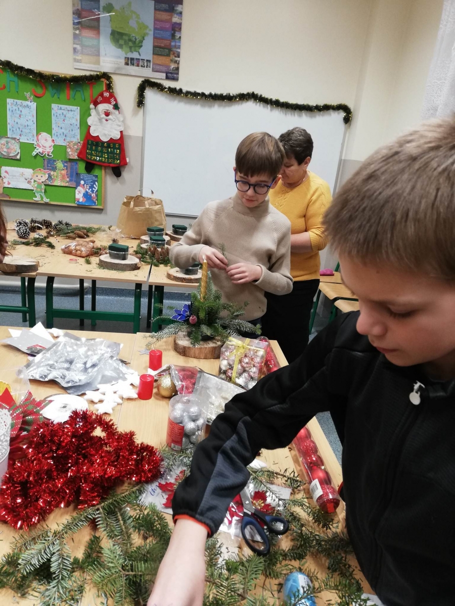 „(...) Noc igliwia zapach niesie”, tak o Wigilii śpiewał zespół Czerwone Gitary, ważnym elementem budującym nastrój Świąt jest zapach. A jak pachną nasze Święta? Suszoną skórką z pomarańczy, jabłkami, goździkami i cynamonem, piernikiem, woskową świecą, a także świeżo ściętą gałązką. Bowiem wszystkie te aromatyczne elementy stanowiły wyjątkową ozdobę świątecznych stroików przygotowanych przez naszych uczniów dla chorych spędzających Boże Narodzenie w Hospicjum.
