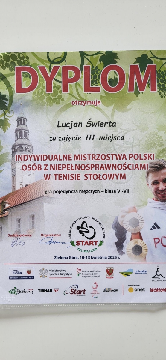 Lucjan Świerta uczeń klasy szóstej został brązowym medalistą Indywidualnych Mistrzostw Polski w Tenisie Stołowym osób z niepełnosprawnościami. Organizatorem mistrzostw, które odbyły się w Zielonej Górze był Polski Związek Tenisa Stołowego.