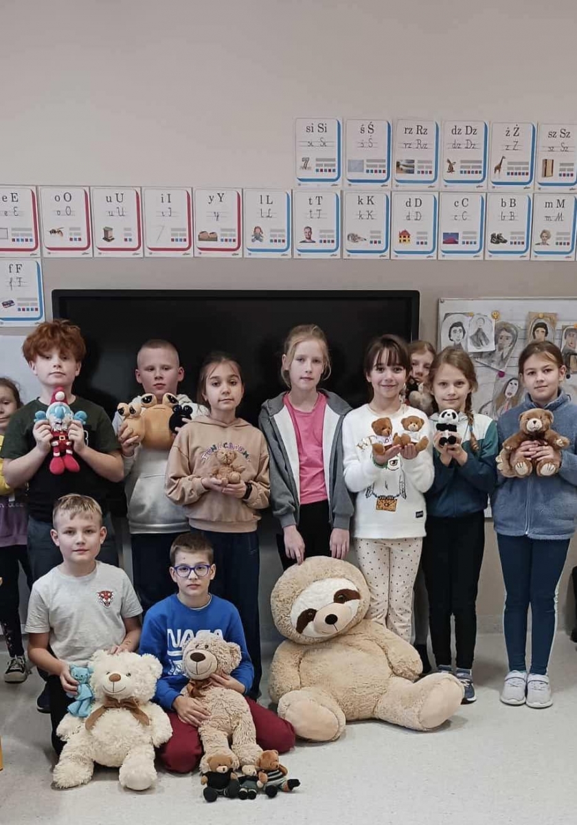 25 listopada obchodzimy Światowy Dzień Pluszowego Misia. By podkreślić niezwykły charakter tego miłego święta, przedszkolaki i uczniowie klas młodszych przyszli do szkoły z ulubionymi pluszakami. Zabawki towarzyszyły dzieciom cały dzień, zarówno podczas zabawy jaki i nauki.