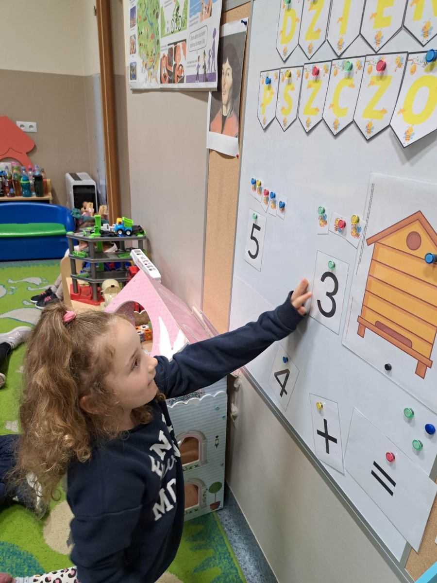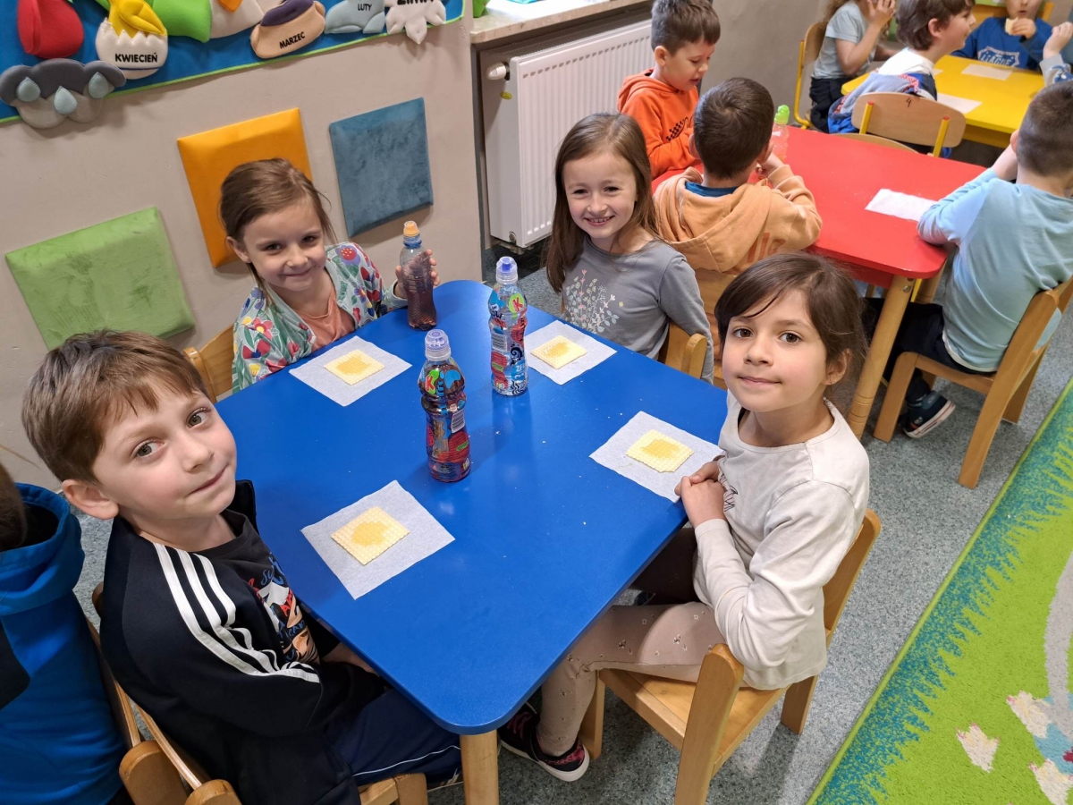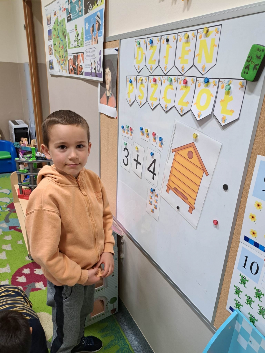 Dzieci z oddziału przedszkolnego "Mądre Sówki" rozmawiały na temat roli pszczół w przyrodzie. Omówiły budowę, pszczoły, etapy powstawiania miodu i jego rodzaje. Dokonywały obliczeń matematycznych posługując się sylwetami pszczółek. Wykonały również pracę plastyczną nawiązującą do tematu pszczół. Najprzyjemniejszą częścią zajęć była degustacja miodu.