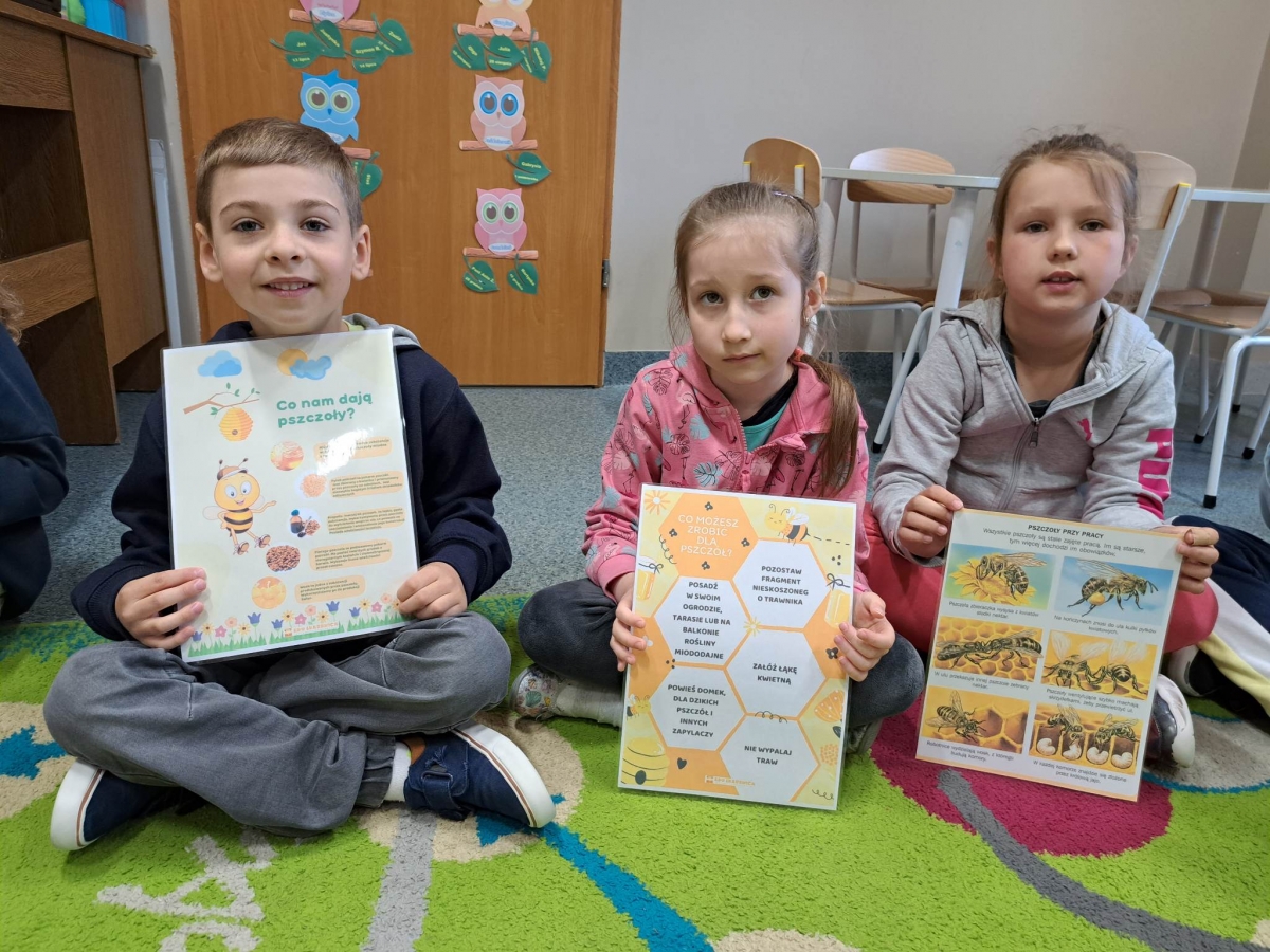 Z okazji Światowego Dnia Pszczół, który przypada 20 maja w naszej szkole odbyły się zajęcia poświęcone tym pożytecznym owadom. Dzieci dowiedziały się jak wygląda życie pszczół oraz jak powstaje miód. Przekonały się jak pracowite są pszczoły i jak ważną rolę pełnią dla środowiska. Uczniowie poznali też inne gatunki owadów zaliczanych do zapylaczy, posadzili kwiaty przyjazne pszczołom oraz spożywali kanapki z przepysznym miodem.