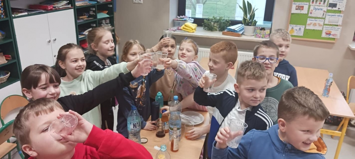 Następnie uczniowie udowodnili, że woda smakowa może być zdrowa. Wystarczy ją zrobić samodzielnie.