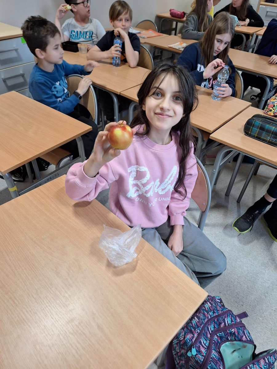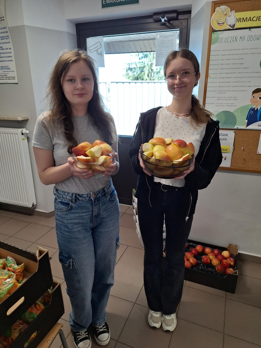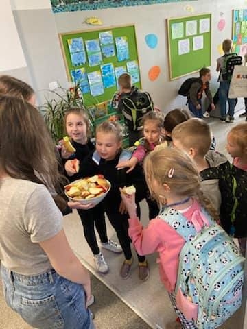 W tym dniu Samorząd Uczniowski zadbał rownież, by wszyscy otrzymali porcję witamin i rozdawał jabłka.