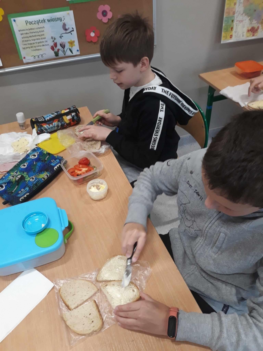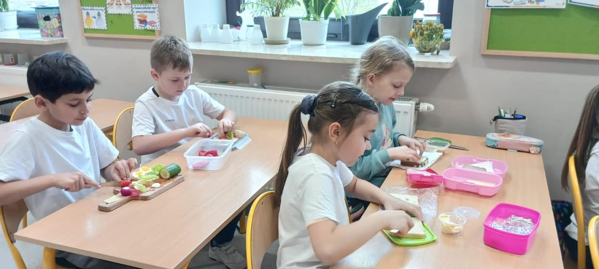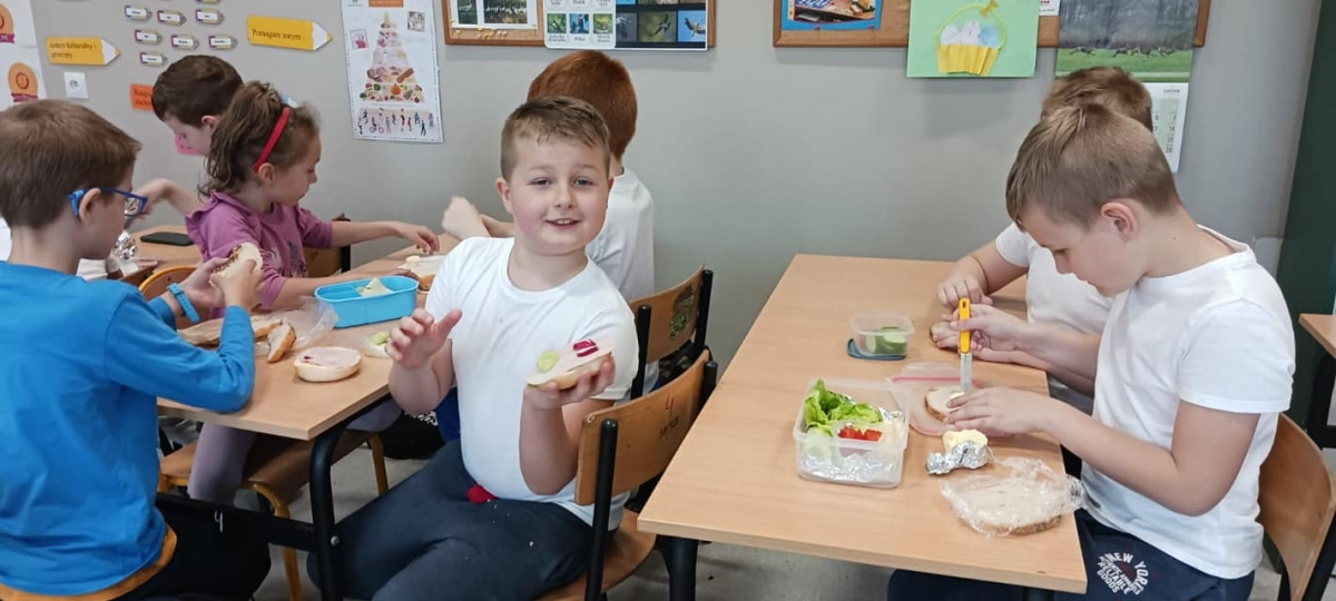 W ramach Dnia Zdrowia uczniowie przygotowywali kolorowe i zdrowe II śniadanie. Były to kanapki, na których królowały warzywa.