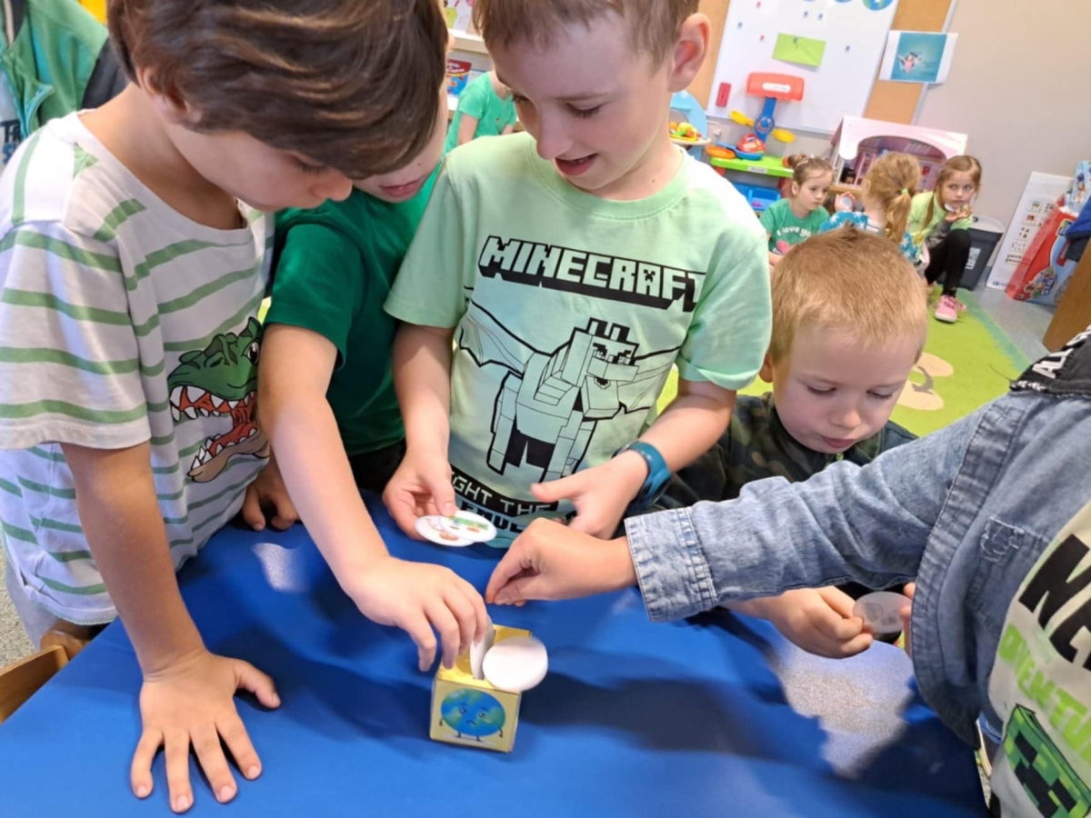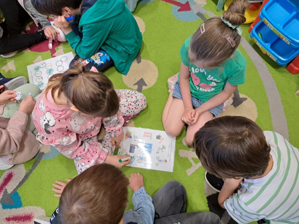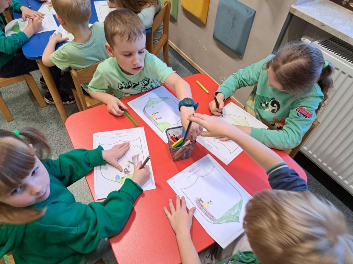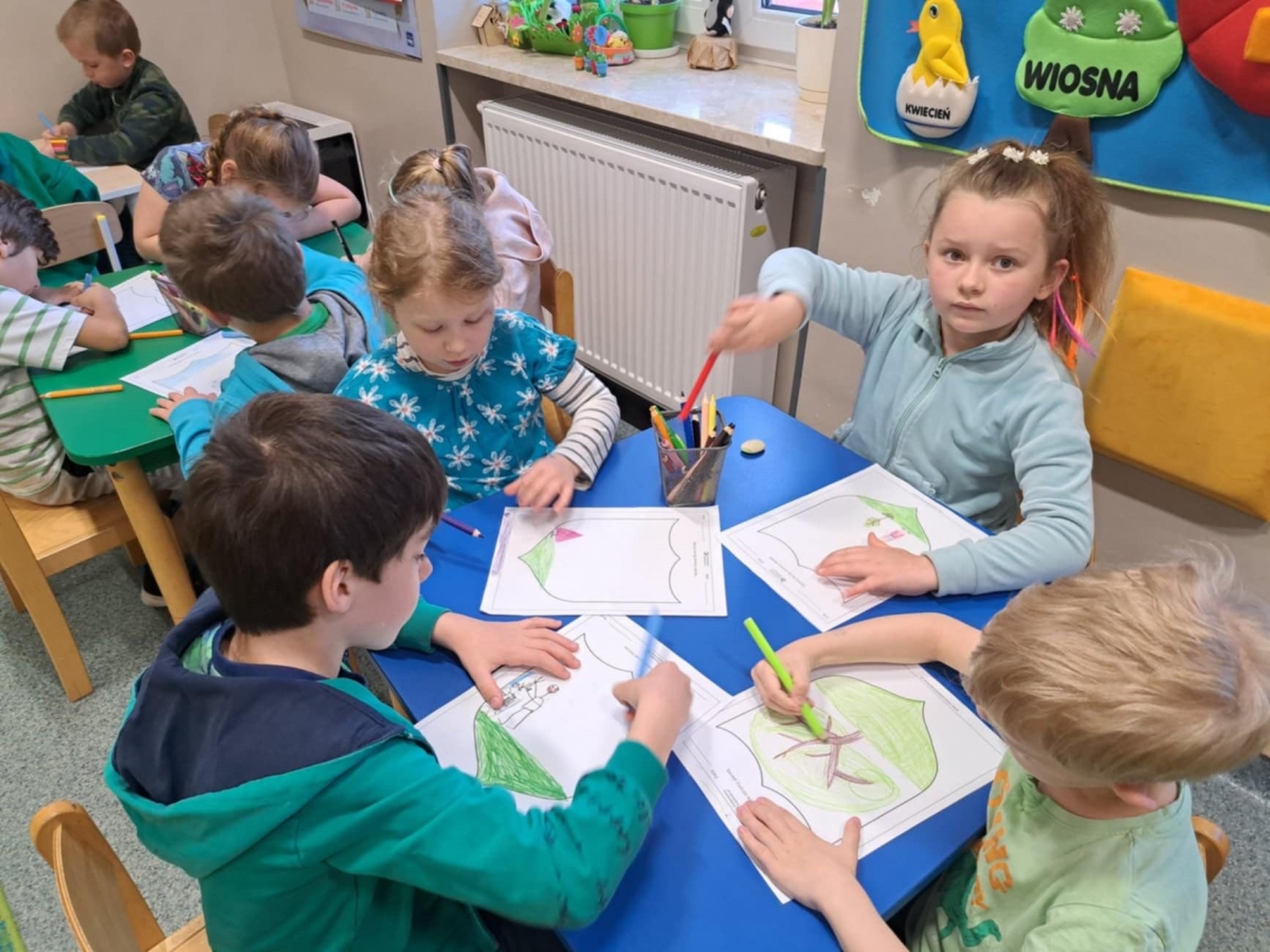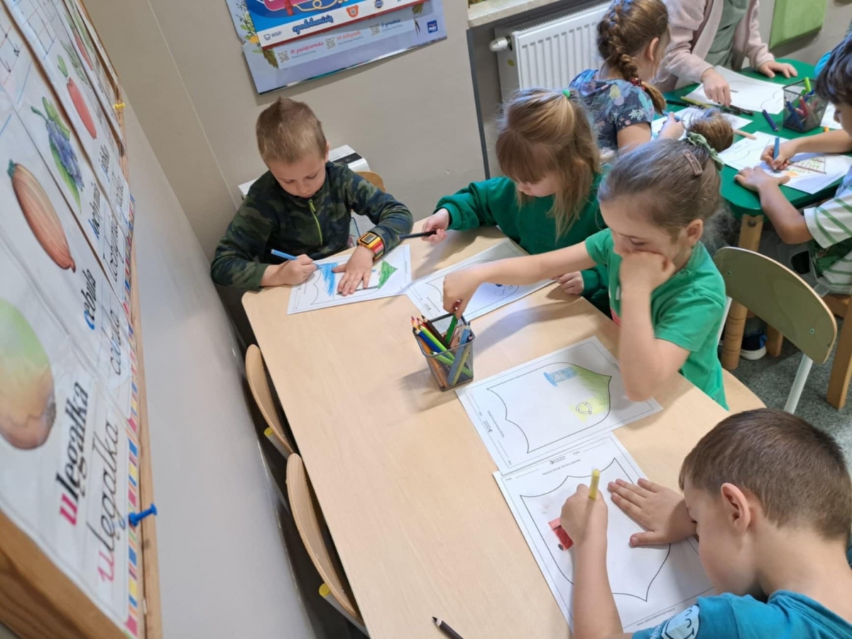 Dzieci z oddziału "Mądrych sówek" rozwiązywały zadania dotyczące dbania o przyrodę, oszczędzania energii i wody, segregowania śmieci. Odpowiadały także na pytania z wiedzy o ekologii oraz wykonywały pracę plastyczną - tarczę obrońcy przyrody.