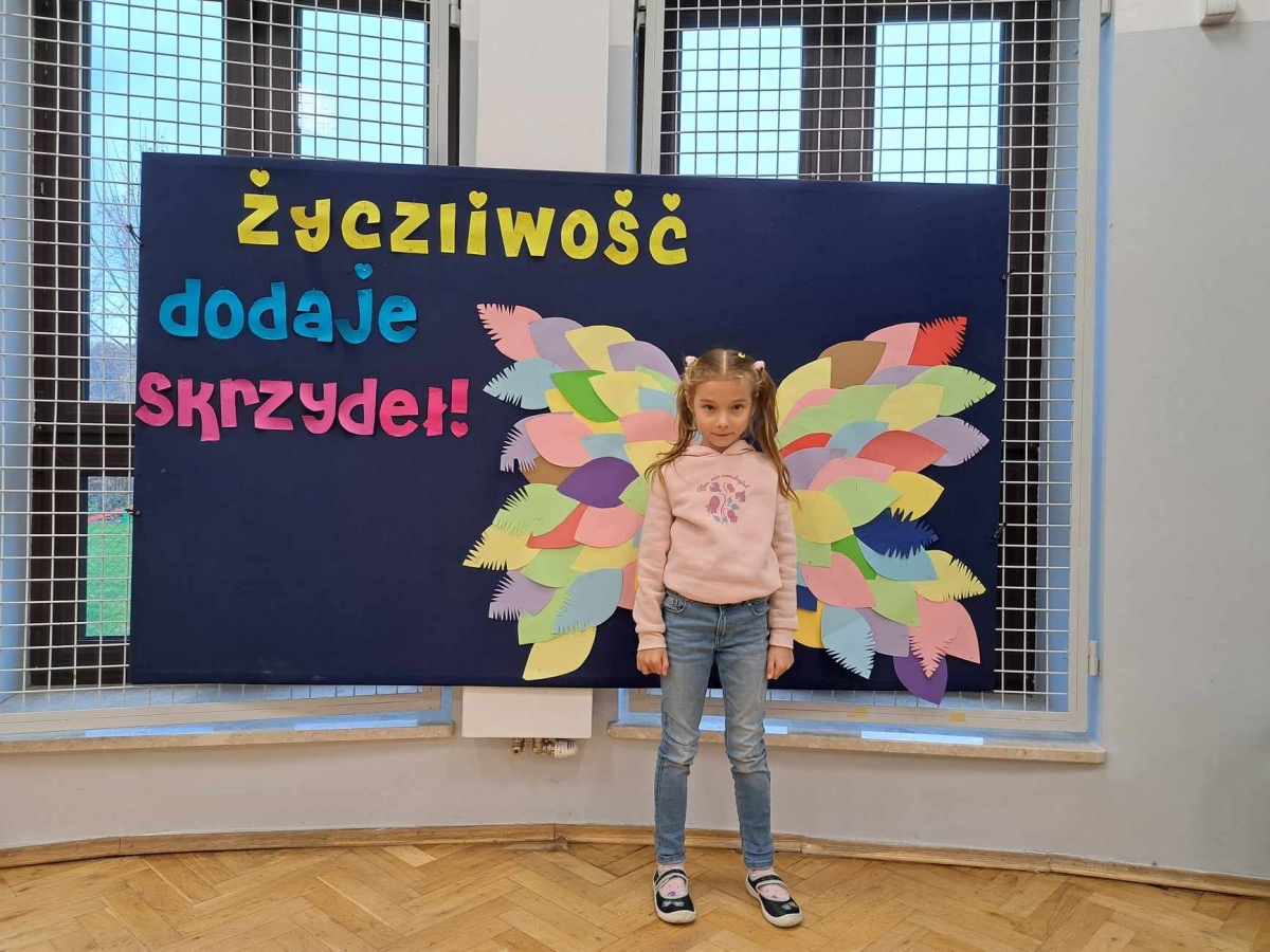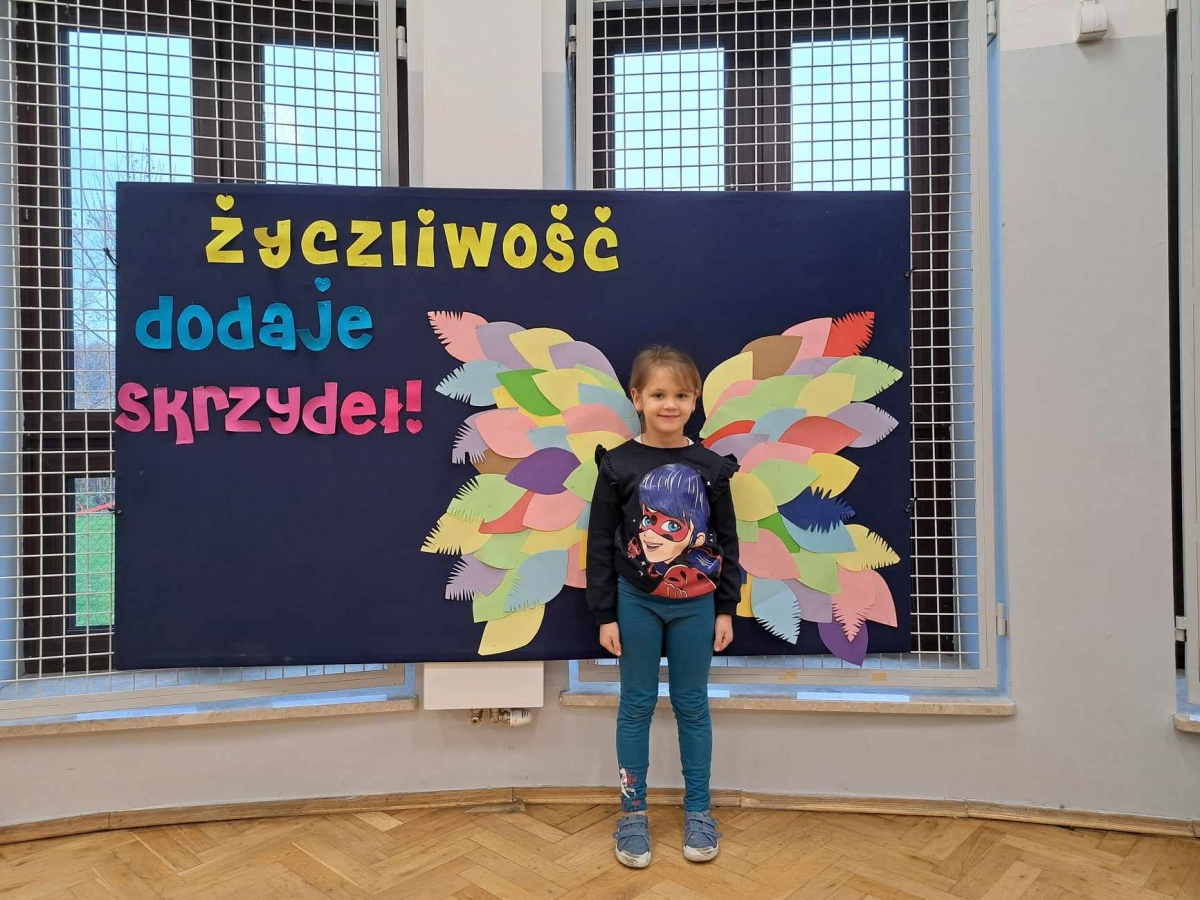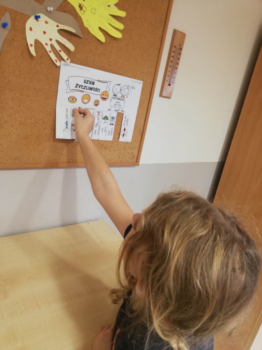 Na świetlicy uczniowie wykonali drzewo życzliwości, na którym pojawiły się nietypowe liście. Na każdym z nich pojawiło się mnóstwo życzliwych słów. Natomiast dzieci z oddziału przedszkolnego "Mądre sówki" odwiedziły innych uczniów i nauczycieli życząc im "Miłego dnia" i wręczały uśmiechnięte buźki. Każdy mógł również zrobić sobie zdjęcie przy skrzydłach życzliwości.