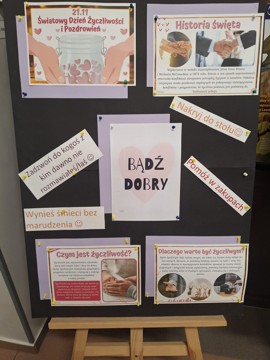 Światowy Dzień Życzliwości i pozdrowień obchodzony jest 21 listopada i ma służyć promowaniu wartości takich jak empatia, szacunek i dobroć w naszych szkołach. Obecnie Dzień Życzliwości i Pozdrowień jest obchodzony w ponad 180 krajach. Tego dnia szczególną uwagę zwracamy na wzajemną życzliwość, aby uwrażliwić ludzi i wzbudzić pozytywne emocje.