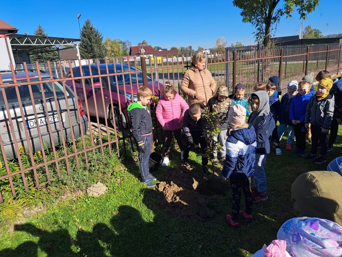 My w naszej szkole zdecydowaliśmy się spojrzeć w przyszłość, ponieważ naszym marzeniem jest żyć i cieszyć się pięknem przyrody. By te marzenia mogły się spełnić wspólnie posadziliśmy młode drzewka w otoczeniu budynku szkoły.