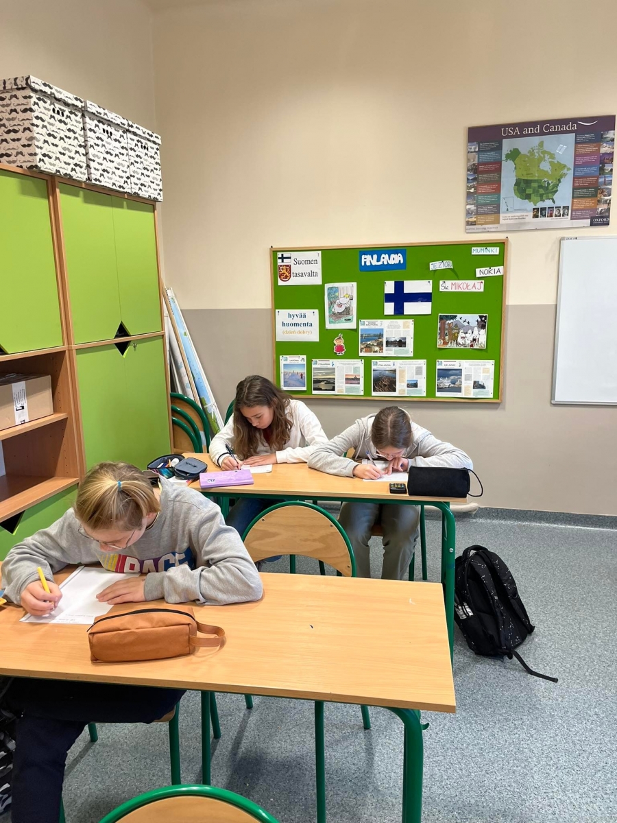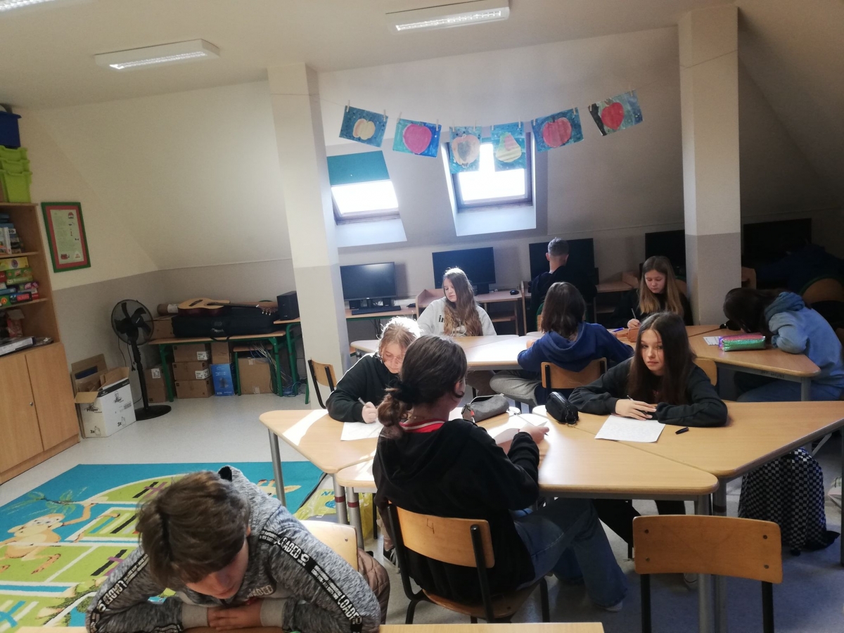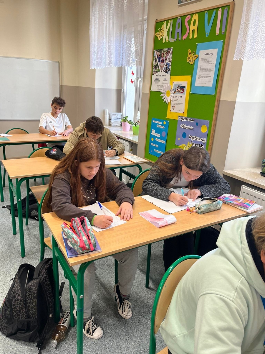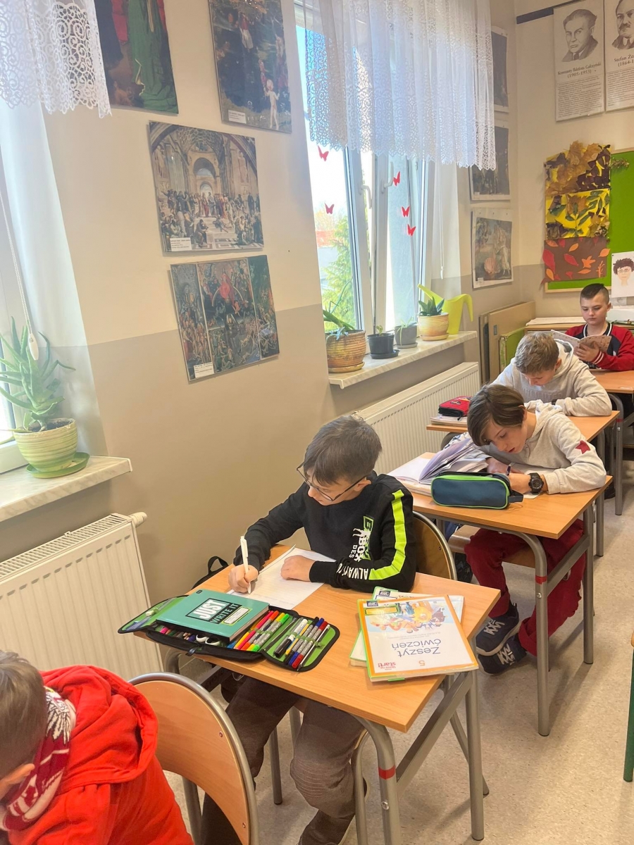 Uczniowie klas starszych IV – VIII pisali tekst dyktanda inspirowany materiałami Ogólnopolskiego Dyktanda Niepodległościowego „Po polsku o historii”. Jest to wyjątkowy projekt edukacyjny, to nie tylko sprawdzian znajomości języka ojczystego, ale też okazja, by przywołać pamięć o najważniejszych postaciach i wydarzeniach współczesnej historii Polski