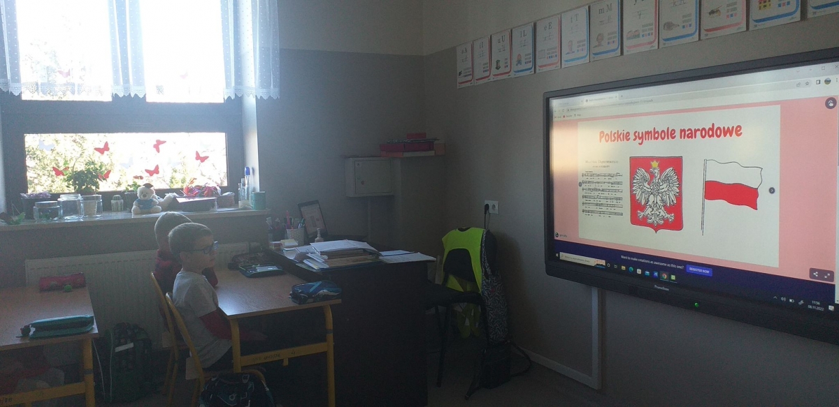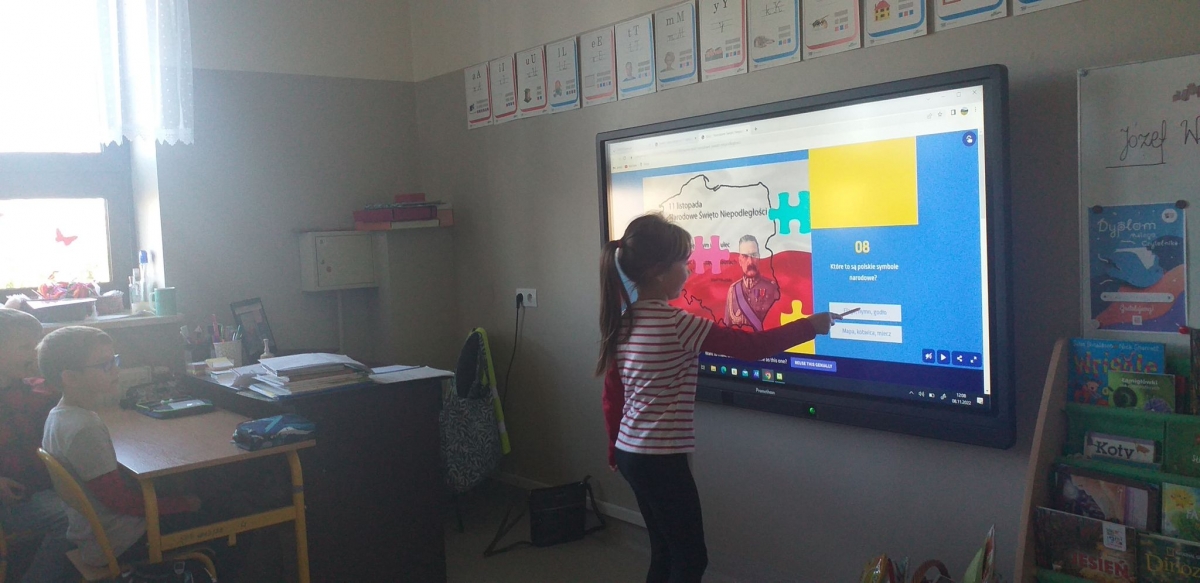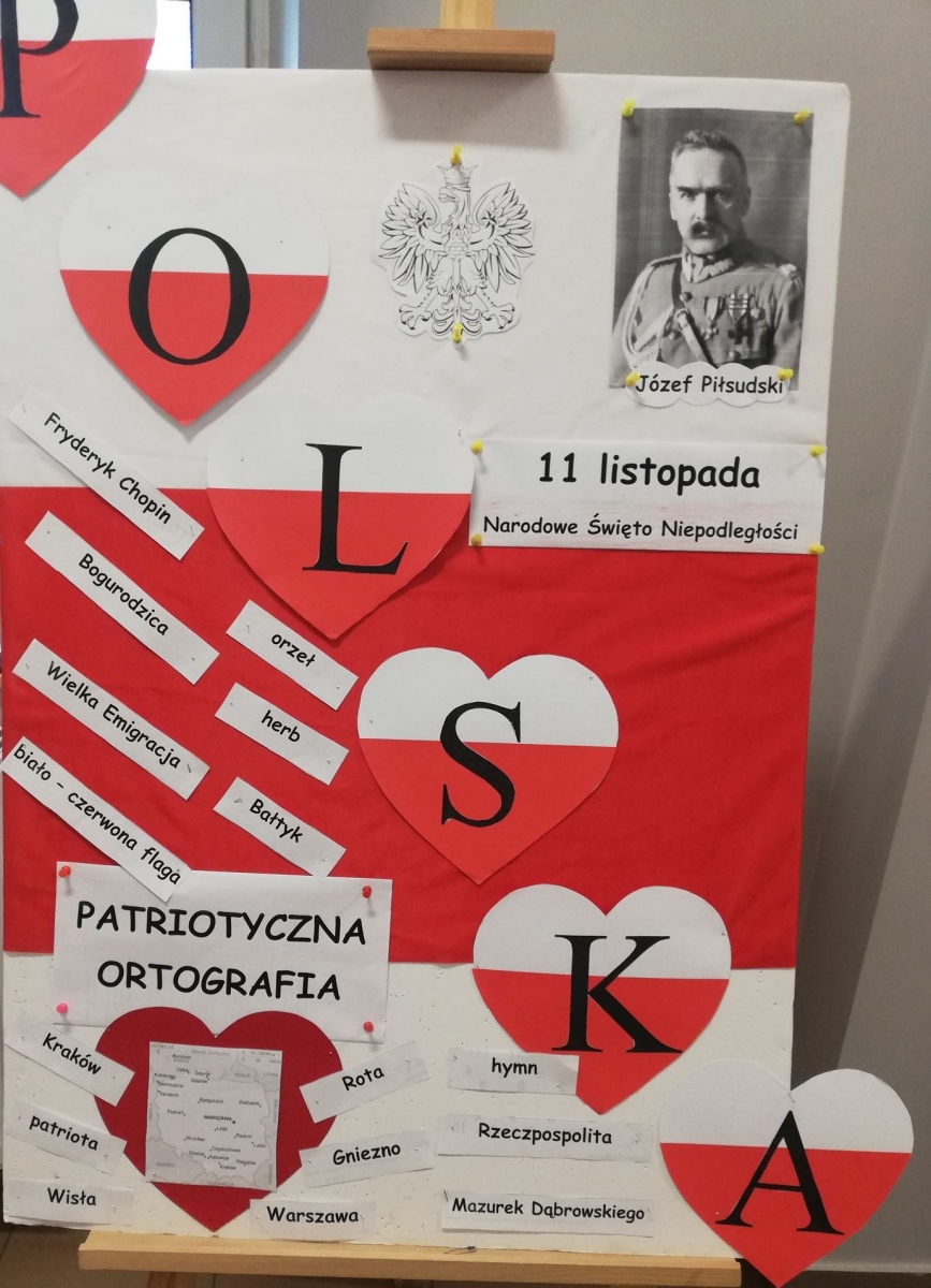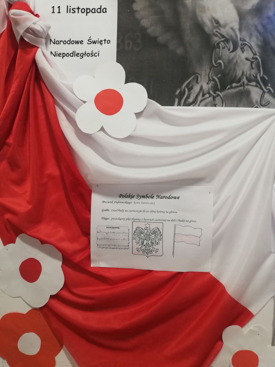 Uczniowie założyli stroje w barwach narodowych. Dzieci młodsze rozmawiały o symbolach narodowych i ważnych postaciach dla dziejów Polski, tworzyły także prace plastyczne o tematyce narodowej, a uczniowie klas starszych uczestniczyli w Szkolnym Dyktandzie z okazji Narodowego Święta Niepodległości. Zmagania ortograficzne podejmowali również uczniowie klas młodszych, wykonując ćwiczenia interaktywne.