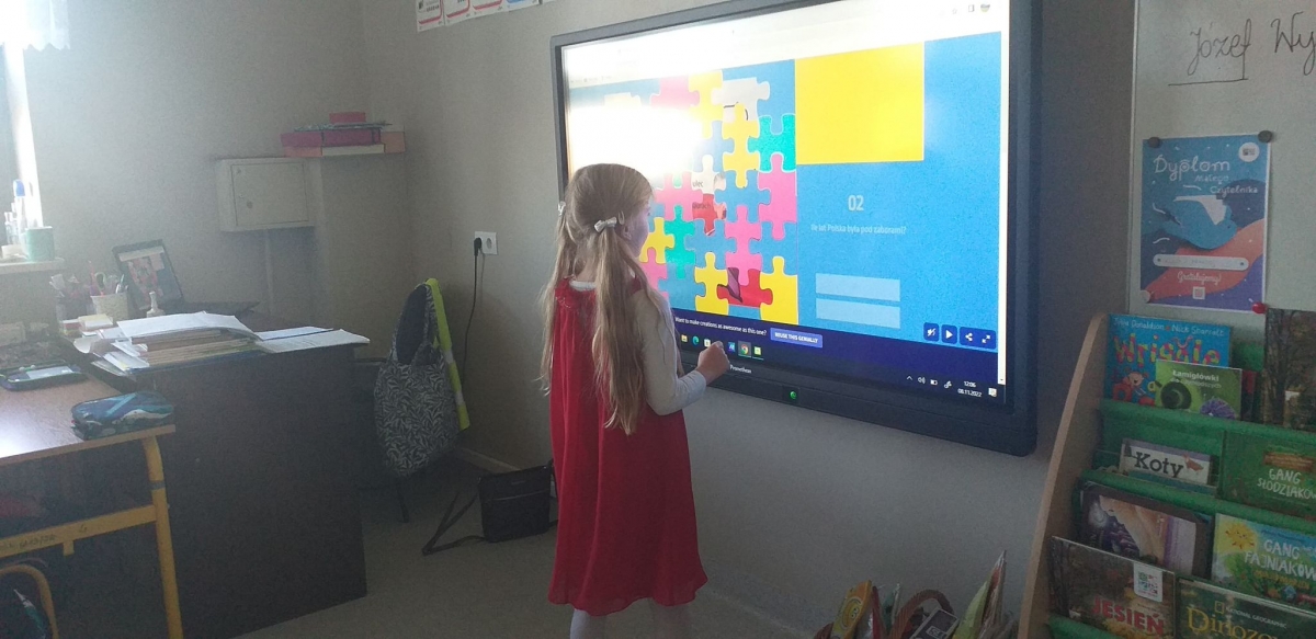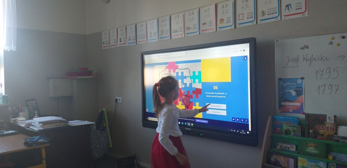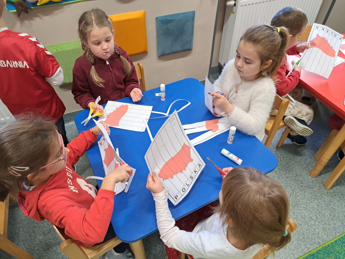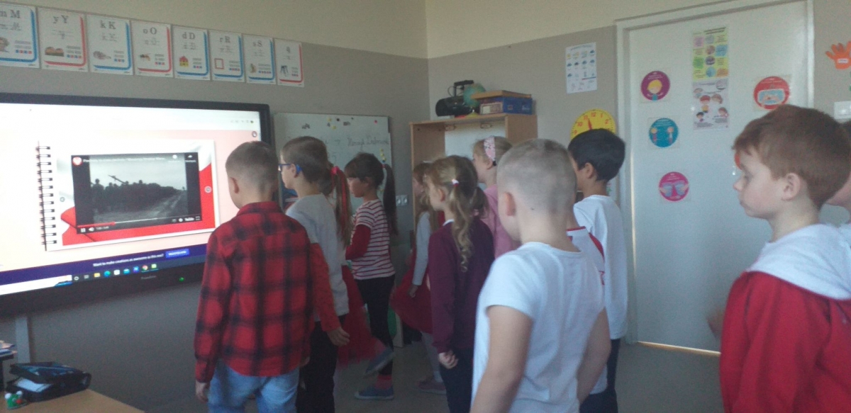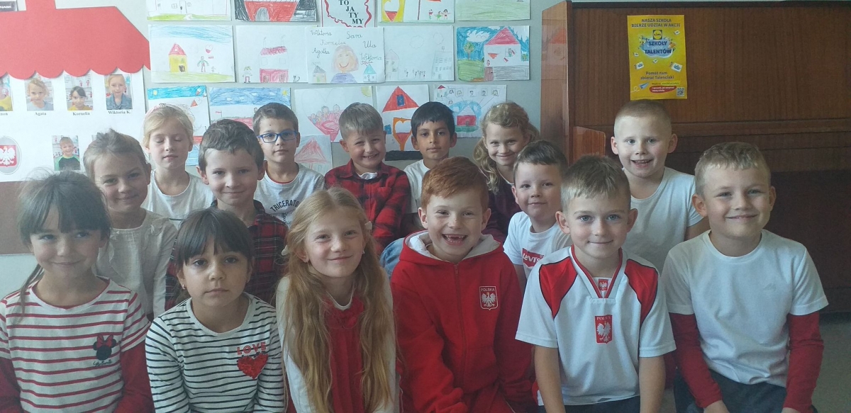 Uczniowie założyli stroje w barwach narodowych. Dzieci młodsze rozmawiały o symbolach narodowych i ważnych postaciach dla dziejów Polski, tworzyły także prace plastyczne o tematyce narodowej, a uczniowie klas starszych uczestniczyli w Szkolnym Dyktandzie z okazji Narodowego Święta Niepodległości. Zmagania ortograficzne podejmowali również uczniowie klas młodszych, wykonując ćwiczenia interaktywne.