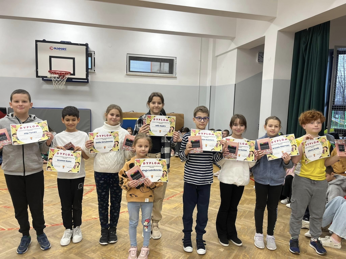 Wyróżniono 11 osób, a ich prace zostały wyeksponowane na sztaludze znajdującej się na korytarzu szkolnym.