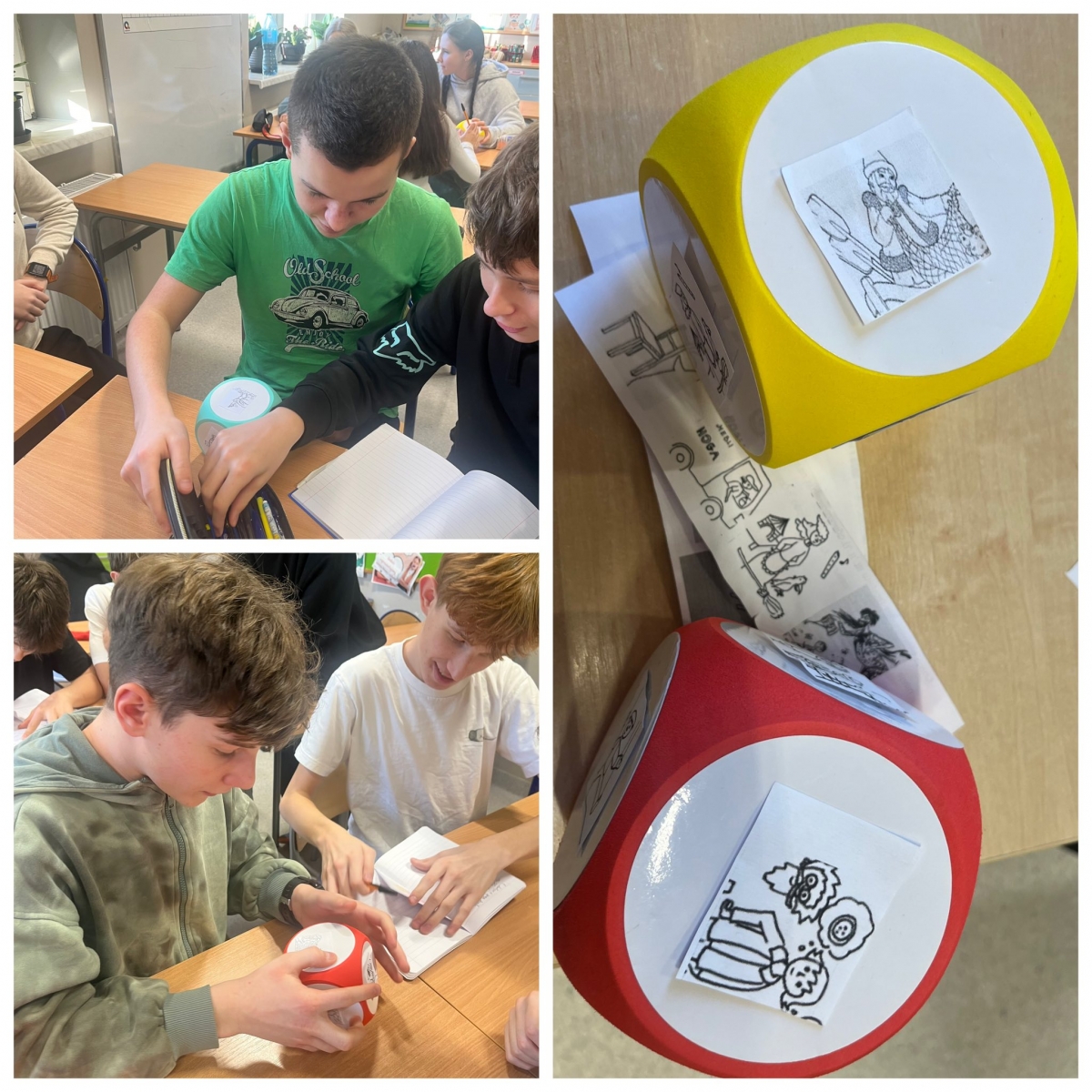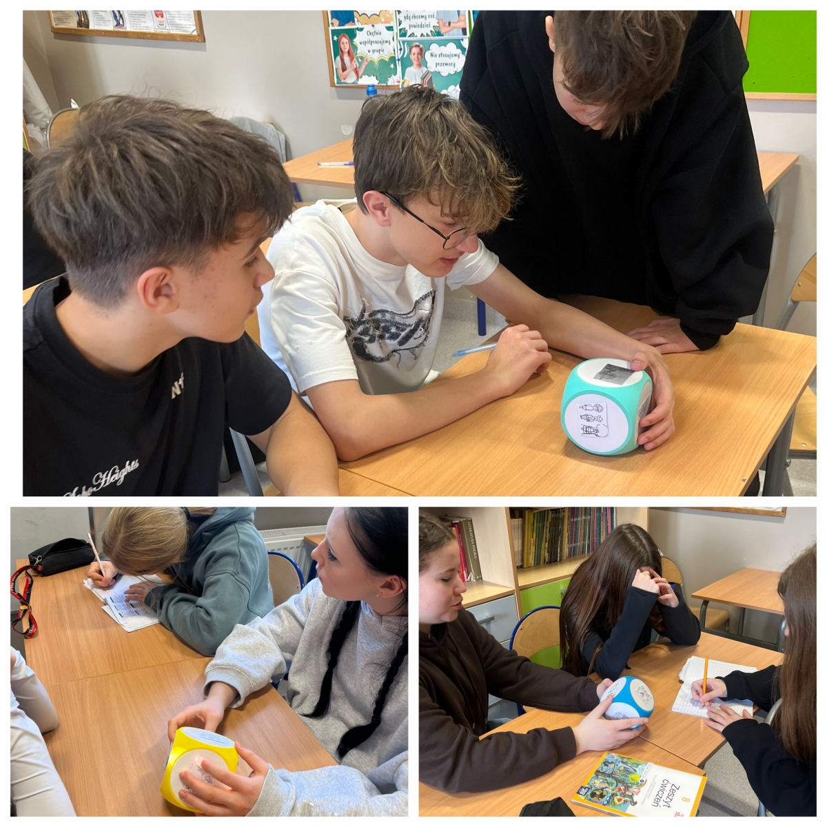 Graficzne kostki z motywami z lektur pomogły uczniom błyskawicznie przywołać treść lektur, bohaterów i najważniejsze wątki. Obraz - skojarzenie - wiedza – to działa!