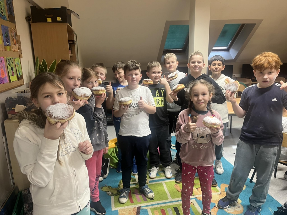 Z tej okazji Rada Rodziców zrobiła nam miły prezent i dostarczyła pączki dla wszystkich oddziałów klasowych oraz przedszkolnych.