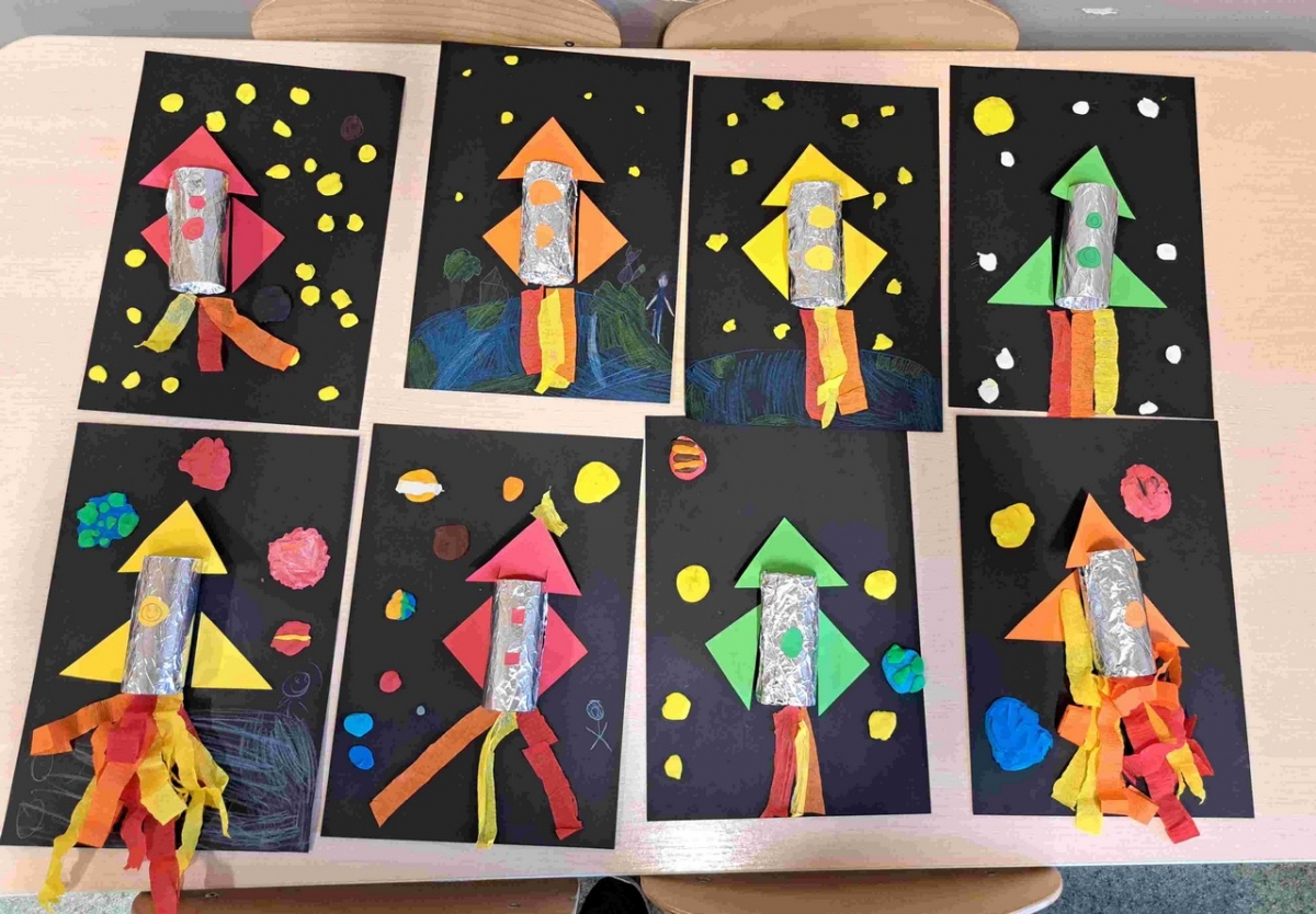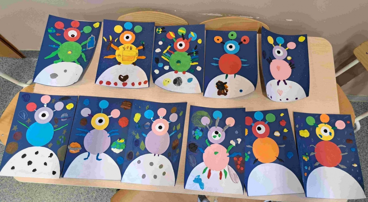 W ubiegłym tygodniu dzieci z oddziału przedszkolnego „Mądre Sówki” rozmawiały na temat kosmosu oraz Układu Słonecznego, którego częścią jesteśmy. Przypomniały sobie nazwy planet tego Układu oraz ich cechy charakterystyczne. Niezwykle ważnym elementem tej wiedzy były także zajęcia o Mikołaju Koperniku – bardzo ważnej postaci w historii zarówno Polski jak i astronomii. Wykonały także dwie ciekawe prace plastyczne: „Kosmita” oraz „Rakieta”.