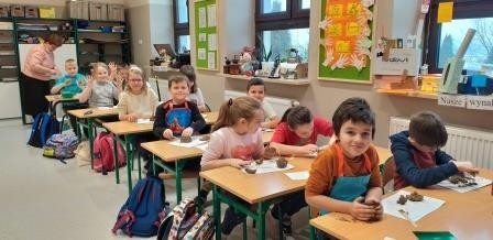 Uczniowie klasy drugiej odkrywali historię życia ludzi w dawnych czasach, poznawali zawody wykonywane dawniej. Dzięki zaangażowaniu rodziców zorganizowali wspaniałą wystawę przedmiotów minionej epoki, próbowali także swoich sił jako garncarze. W ostatnim dniu realizacji tematu z entuzjazmem podjęli się zadań jako wynalazcy.