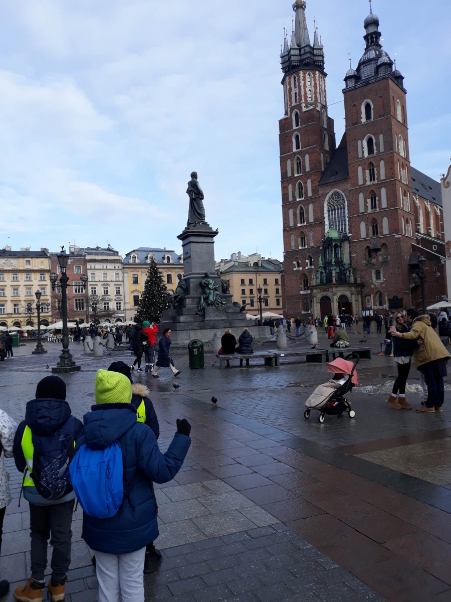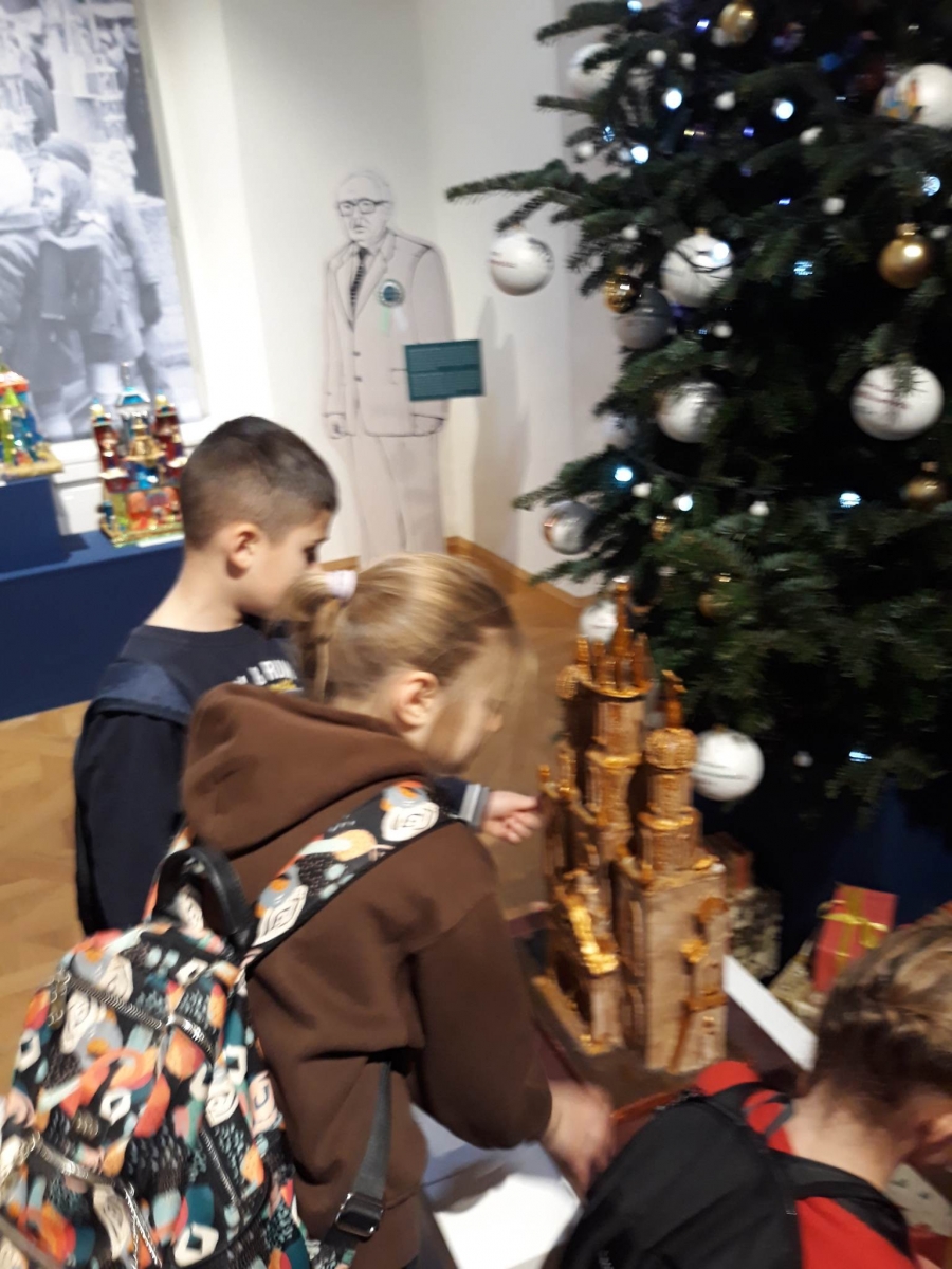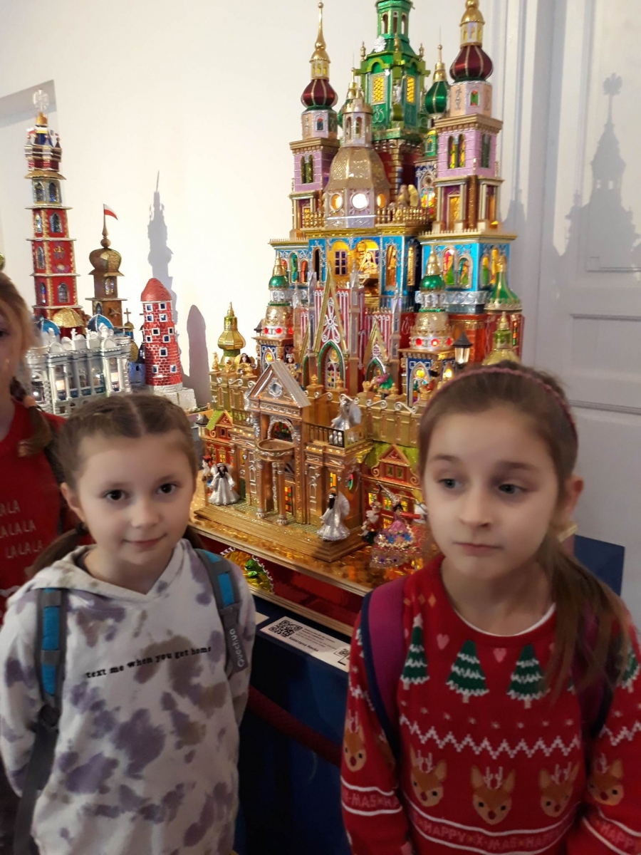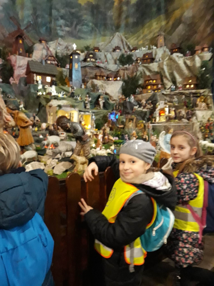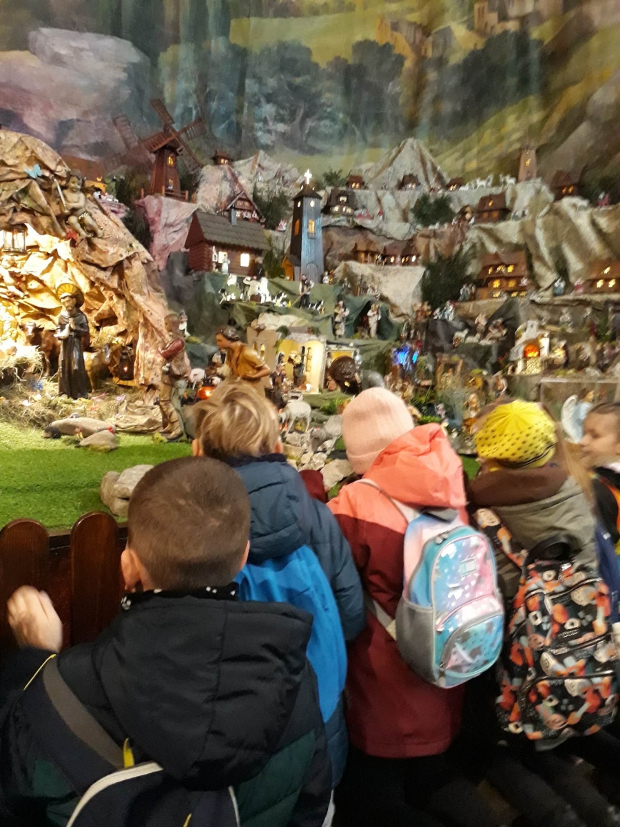 Uczniowie klasy II we wtorek 3 stycznia odwiedzili największą ruchomą szopkę w Krakowie - w kościele ojców Bernardynów. Zobaczyli tam rodzinę świętą, jak w każdej szopce, a wokół niej odtworzony świat w miniaturze z tamtej epoki. Chaty, w których toczy się prozaiczne życie ludzi: kobietę wałkującą ciasto, kowala kującego podkowy, owce pasące się na pastwisku, młyn i rybaka z siecią rybacką – to tylko nieliczne elementy, które zachwyciły nas swoim widokiem. Największe wrażenie robi drwal ścinający drzewo. Niemal każda postać wyposażona jest w mechanizm, dzięki któremu wykonuje daną czynność. Dla dorosłych jest to niesamowite doznanie, a co mówić o dzieciach.