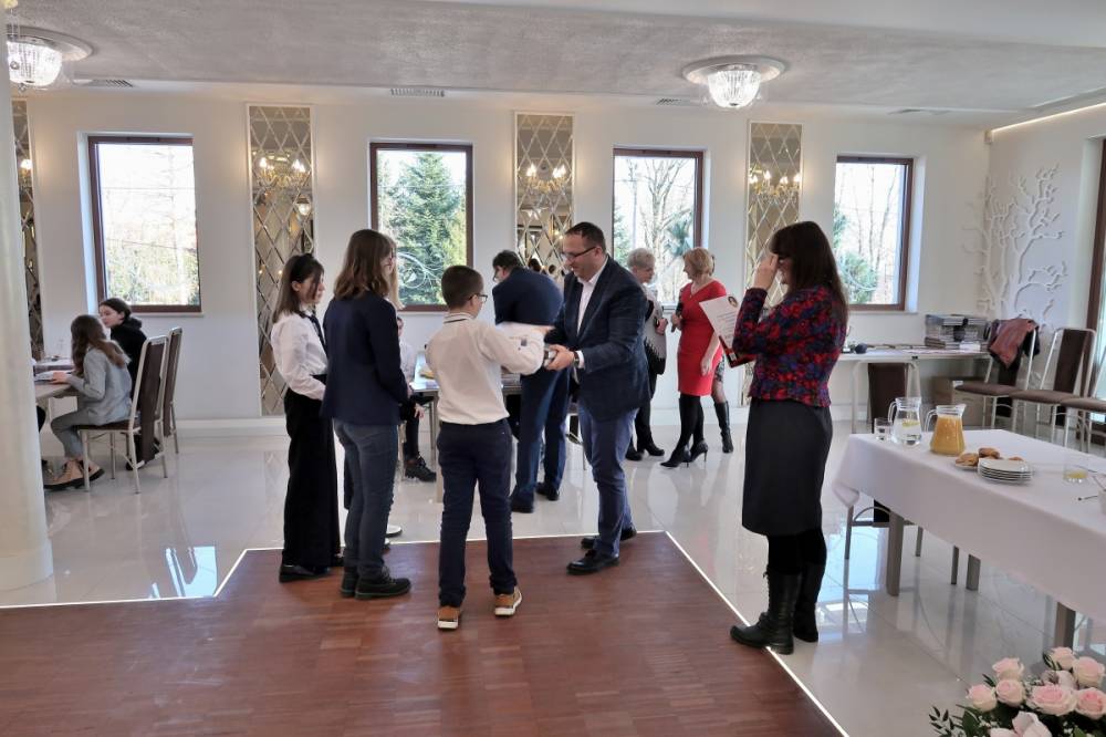 Reprezentacja Szkoły Podstawowej im. Jana Długosza w Piekarach w składzie: Zuzanna Knez, Hanna Kańka, Natalia Rożek i Hubert Kańka wzięła udział w kolejnej edycji gminnego konkursu wiedzy o Polsce „Kocham Polskę”. Konkurs, który odbył się 11 marca 2022 roku, zgromadził reprezentacje dziewięciu szkół z gminy Liszki. Uczniowie odpowiadali na pytania z historii oraz geografii, wykonywali zadania plastyczne i przedstawiali żywe obrazy ilustrujące życie patronów szkół. Nasza drużyna zaprezentowała scenkę, w której występował Jan Długosz (Hubert Kańka), król Kazimierz Jagiellończyk (Zuzia Knez), królowa Elżbieta Rakuszanka (Hania Kańka) oraz królewicz Władysław Jagiellończyk (Natalia Rożek). Scenariusz napisany przez Zuzię Knez opowiadał historię wyprawy Królewicza Władysława do Czech po królewską koronę. Królewicza odprowadzał jego nauczyciel Jan Długosz. Jesteśmy dumni z naszych uczniów, których wspaniale przygotowali się do udziału w konkursie i włożyli mnóstwo pracy w godne reprezentowanie Naszej Szkoły.