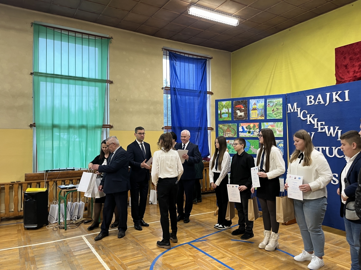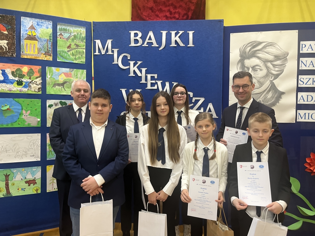 13 marca 2024 roku nasi uczniowie udali się na rozdanie nagród w Konkursie Plastycznym ,,Bajki Mickiewicza w sztuce malarskiej” objętym honorowym patronatem MAŁOPOLSKIEGO KURATORA OŚWIATY oraz honorowym patronatem PRZEWODNICZĄCEGO SEJMIKU WOJEWÓDZTWA MAŁOPOLSKIEGO.