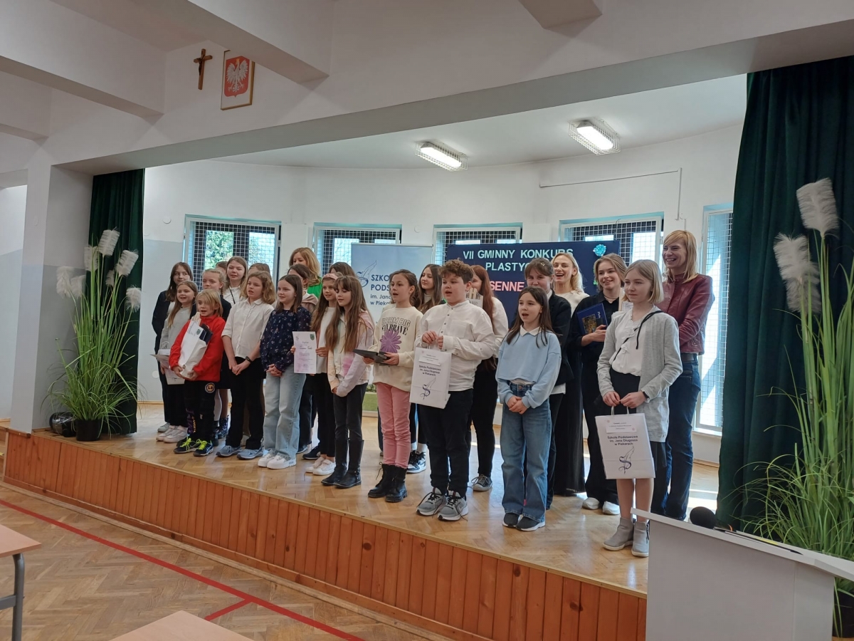 Wiosenne barwy – z takim tematem zmierzyło się 22 uczestników VII Gminnego Konkursu Plastycznego, zorganizowanego 15 marca 2024 r. przez Szkołę Podstawową im. Jana Długosza w Piekarach.