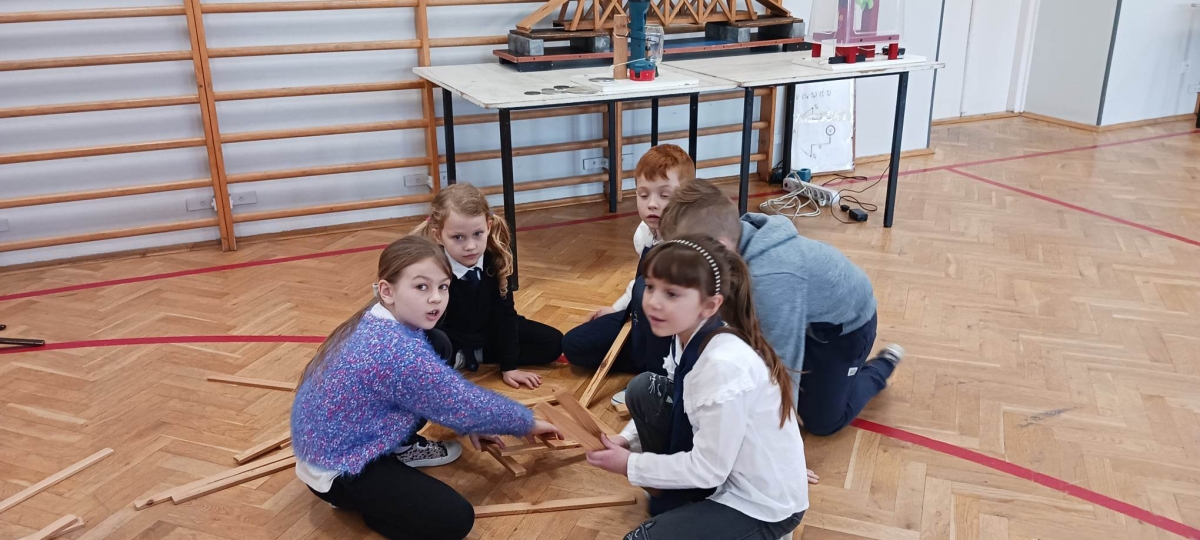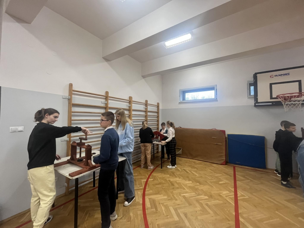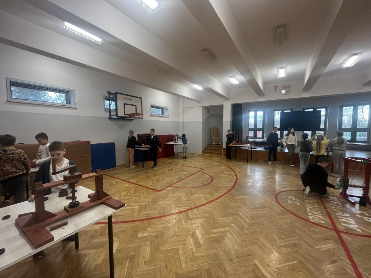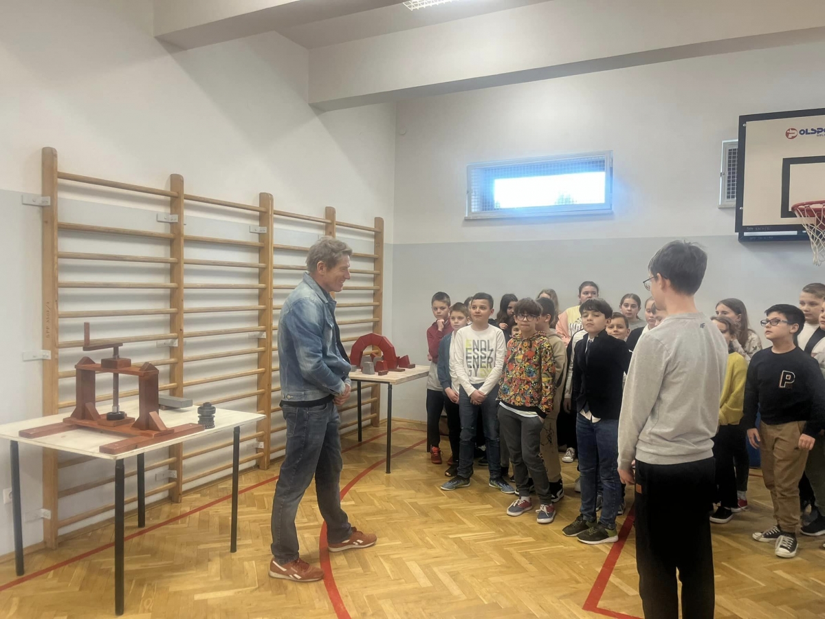 W naszej szkole dla zainteresowanych przedszkolaków i uczniów klas I-VIII odbyły się warsztaty fizyczne. Uczniowie najpierw zapoznawali się z zasadami działania kilkunastu urządzeń i konstrukcji fizycznych, w tym zaprojektowanych przez Leonarda da Vinci, a następnie sami mogli sprawdzić doświadczalnie, jak działają. Budowali więc makietę mostu, doświadczali działania siły odśrodkowej, poruszali makietami dźwigni. Zastosowane przez prowadzącego metody aktywizujące oraz wskazywanie zastosowania fizyki w codziennych sytuacjach życiowych sprawiły, że zajęcia były dla uczniów atrakcyjne, a uczestnictwo w nich ciekawym doświadczeniem edukacyjnym.
