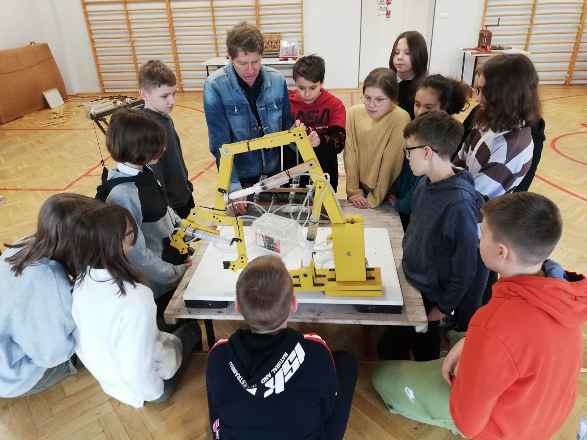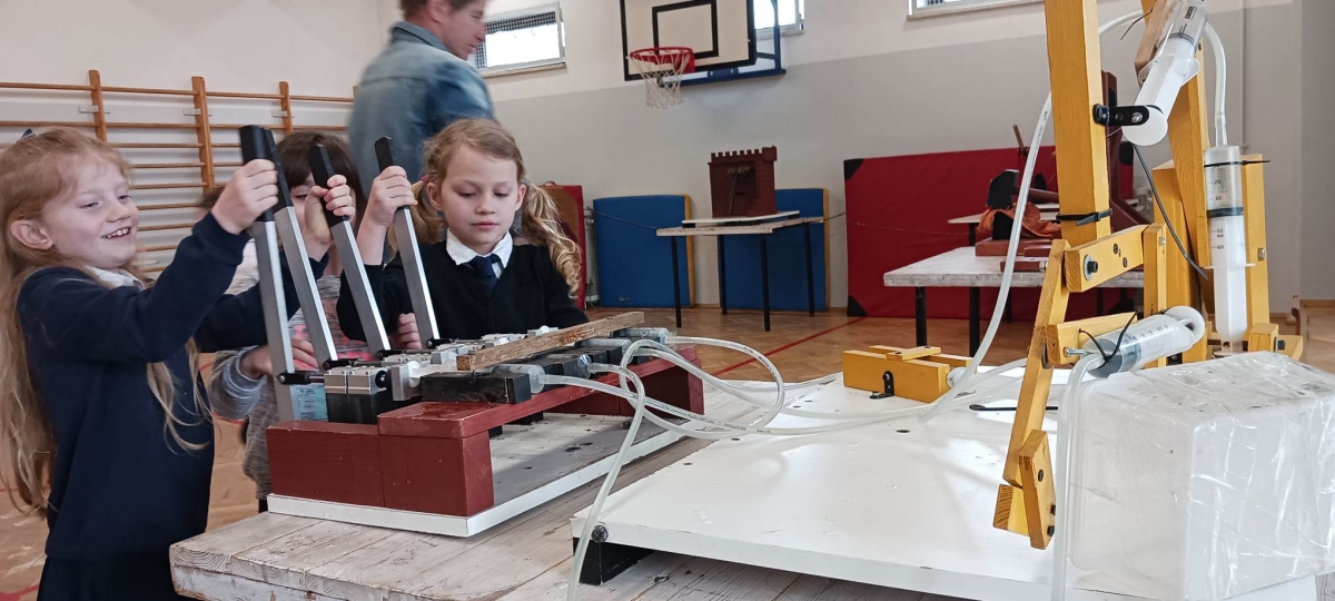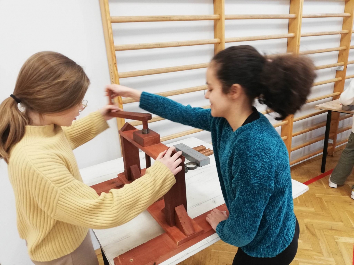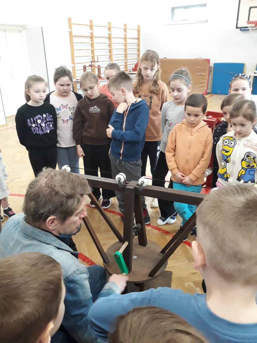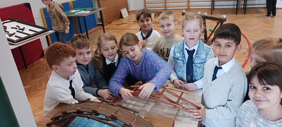 W naszej szkole dla zainteresowanych przedszkolaków i uczniów klas I-VIII odbyły się warsztaty fizyczne. Uczniowie najpierw zapoznawali się z zasadami działania kilkunastu urządzeń i konstrukcji fizycznych, w tym zaprojektowanych przez Leonarda da Vinci, a następnie sami mogli sprawdzić doświadczalnie, jak działają. Budowali więc makietę mostu, doświadczali działania siły odśrodkowej, poruszali makietami dźwigni. Zastosowane przez prowadzącego metody aktywizujące oraz wskazywanie zastosowania fizyki w codziennych sytuacjach życiowych sprawiły, że zajęcia były dla uczniów atrakcyjne, a uczestnictwo w nich ciekawym doświadczeniem edukacyjnym.