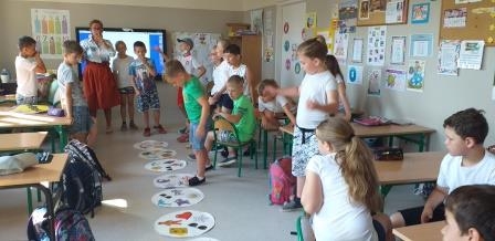 Poruszając tematykę wakacyjną, chętnie opowiadali o swoich zainteresowaniach i hobby, które mogą realizować w czasie wolnym od nauki. Zaangażowanie we wspólną zabawę wzmocniło integrację zespołu klasowego.