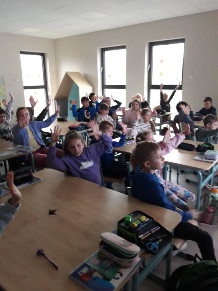 Uczniowie aktywnie uczestniczyli w zajęciach — odpowiadali na pytania, wykonywali krótkie zadania i chętnie dzielili się swoimi spostrzeżeniami.