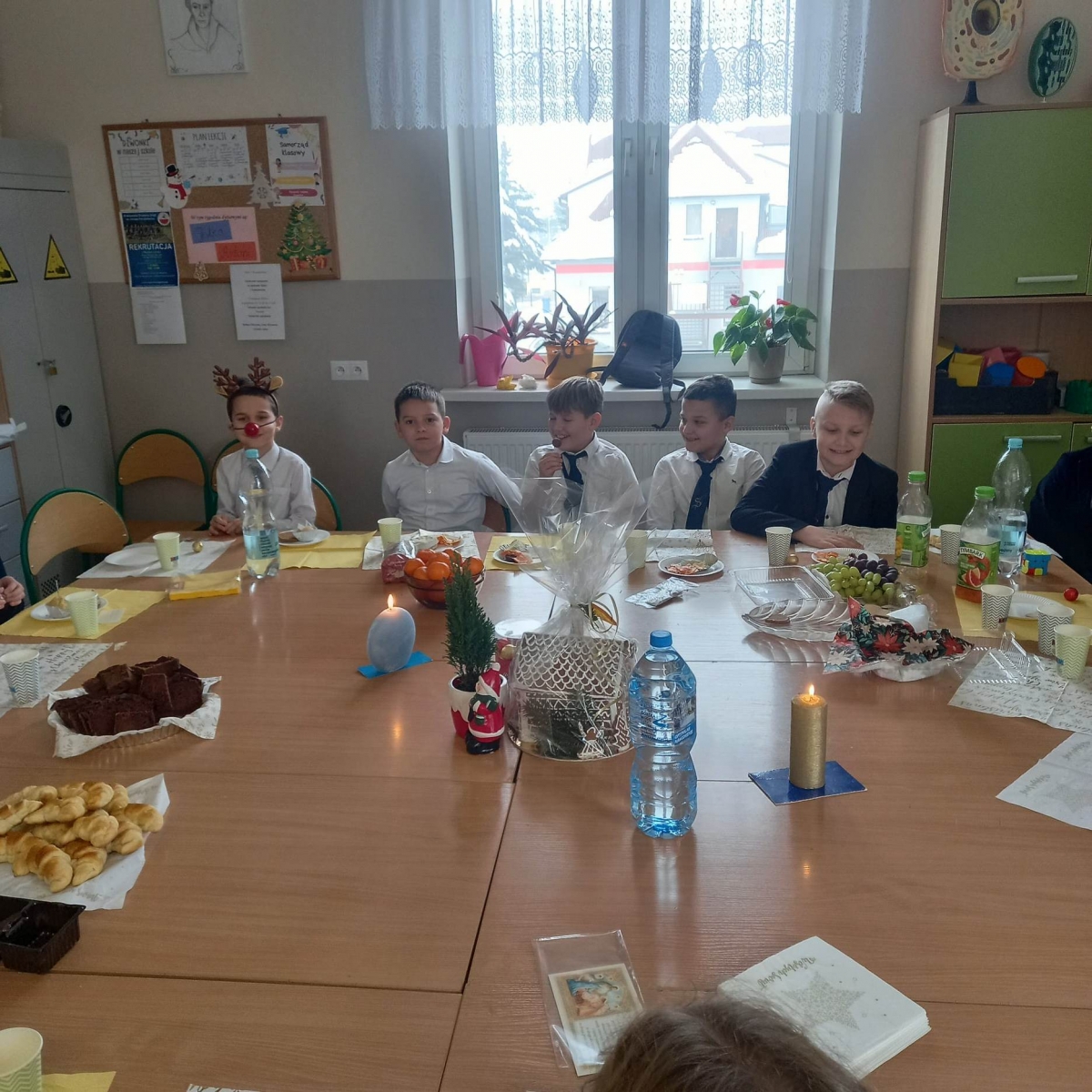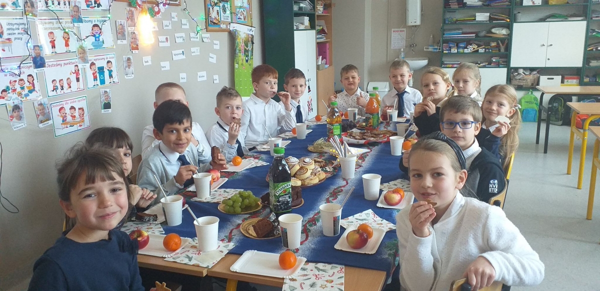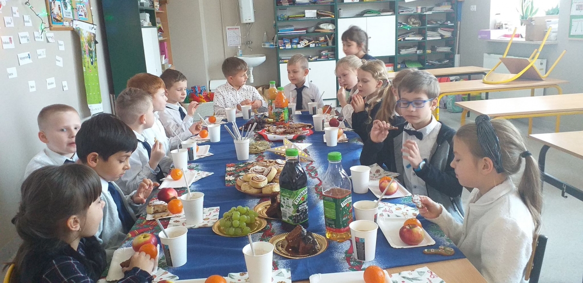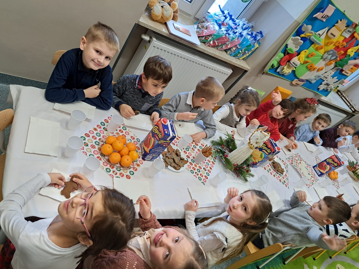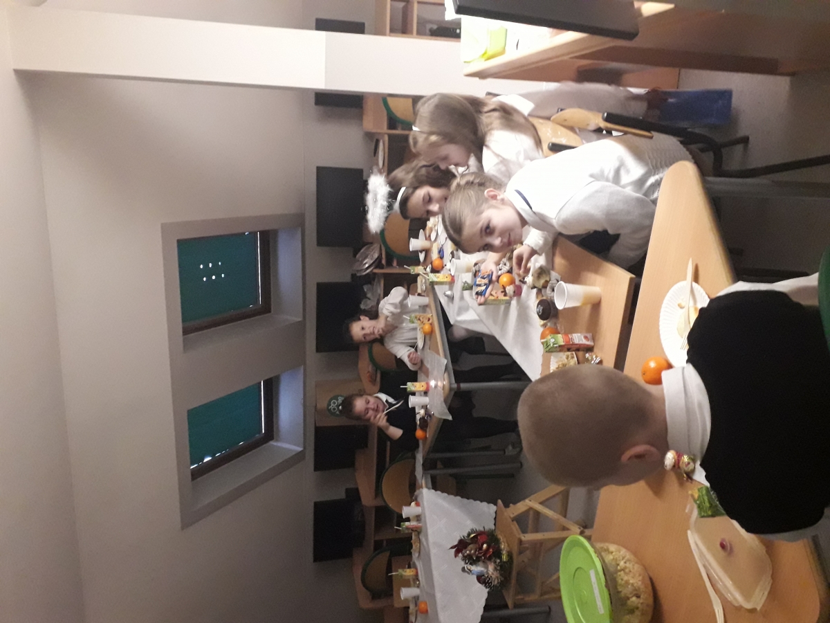 W tym uroczystym dniu przedszkolaki i uczniowie naszej szkoły w odświętnych strojach czytali Pismo Święte, dzielili się opłatkiem, śpiewali kolędy i składali sobie życzenia. Wszyscy już czują atmosferę zbliżających się Świąt Bożego Narodzenia. Dekoracje, zapach choinek i dźwięk kolęd wprowadzają nas w podniosły nastrój.