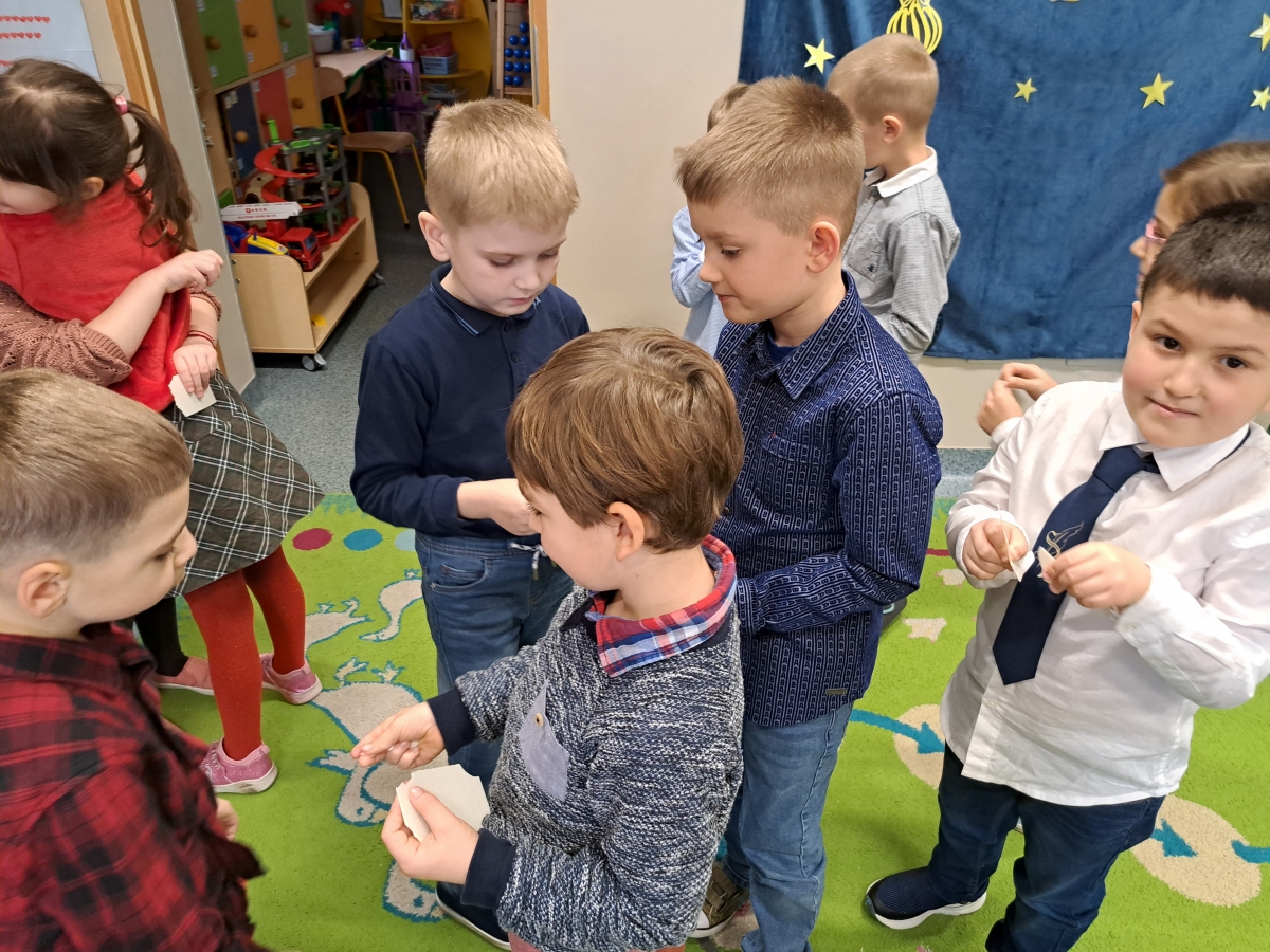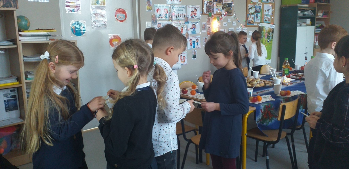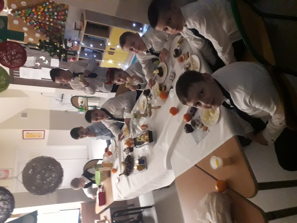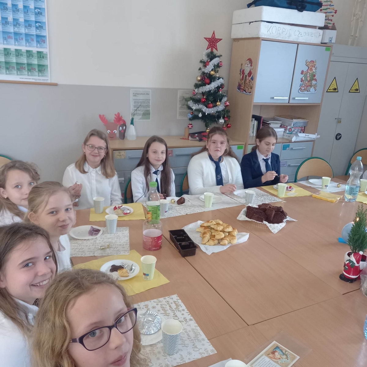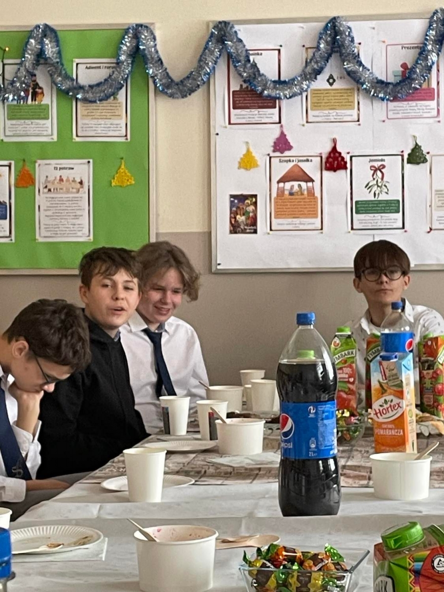 W tym uroczystym dniu przedszkolaki i uczniowie naszej szkoły w odświętnych strojach czytali Pismo Święte, dzielili się opłatkiem, śpiewali kolędy i składali sobie życzenia. Wszyscy już czują atmosferę zbliżających się Świąt Bożego Narodzenia. Dekoracje, zapach choinek i dźwięk kolęd wprowadzają nas w podniosły nastrój.