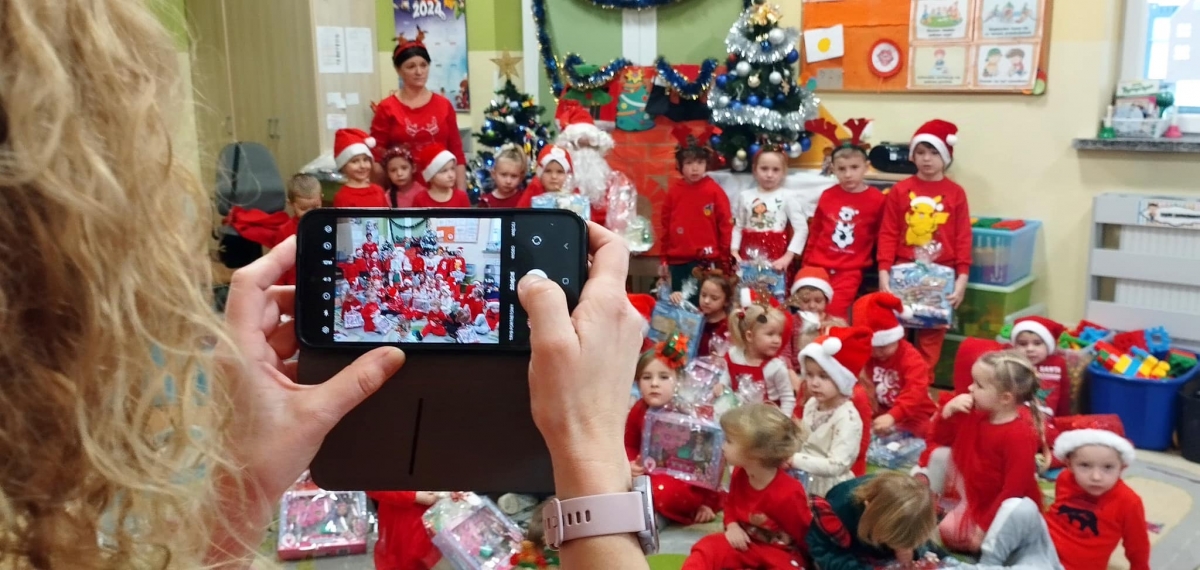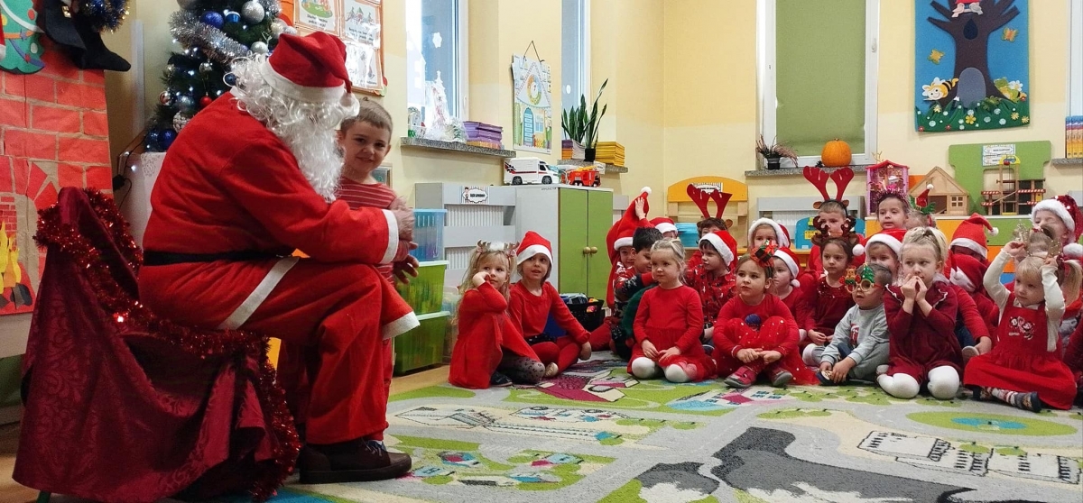 Święty Mikołaj obdarował wszystkich wspaniałymi prezentami, za co dzieci podziękowały mu upominkiem, uściskami i uśmiechami od ucha do ucha