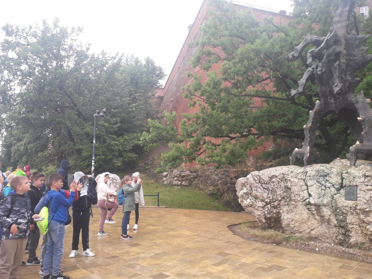 Tym razem celem zwiedzania był najcenniejszy obiekt sakralny w Polsce, czyli Katedra Wawelska - miejsce, które jest świadectwem historii Narodu Polskiego. Uczniowie pod kierunkiem pani przewodnik podziwiali wnętrze Katedry, a następnie pokonali wiele schodów w Wieży Zygmuntowskiej, aby zobaczyć słynny, ważący 12 ton pięćsetletni dzwon zwany Zygmuntem.