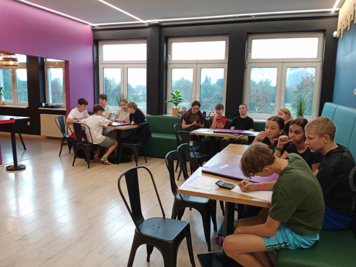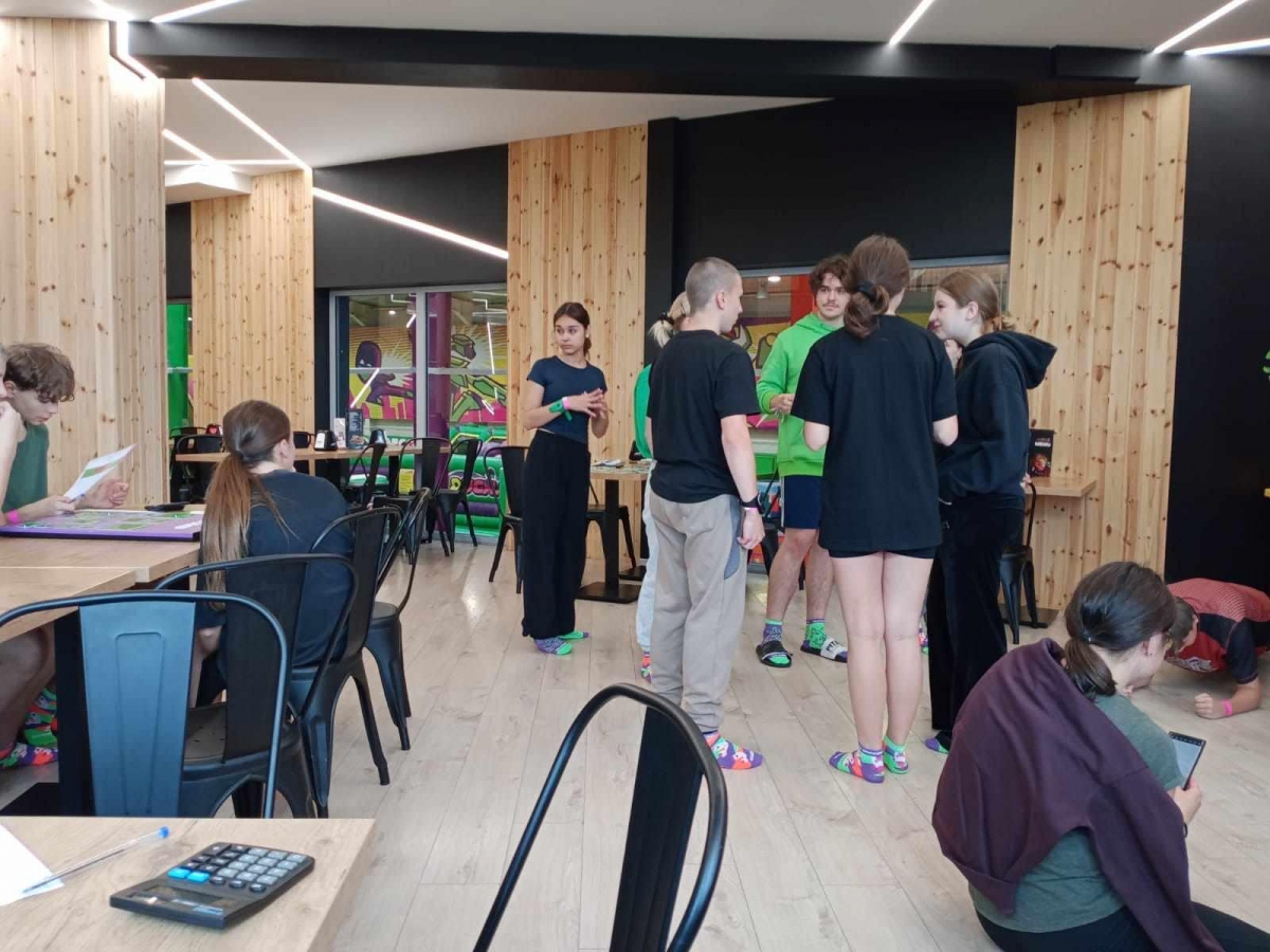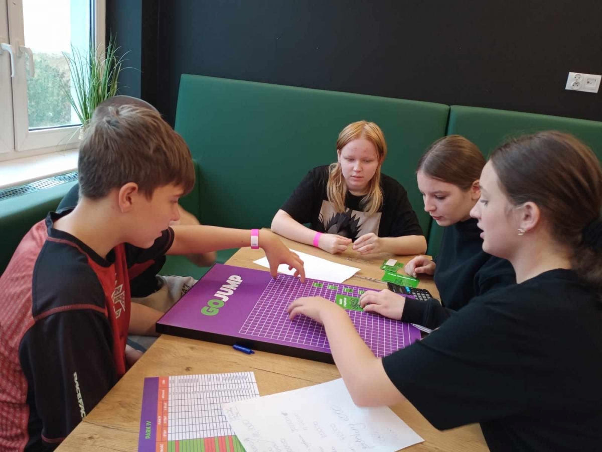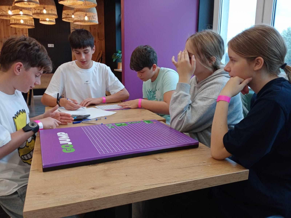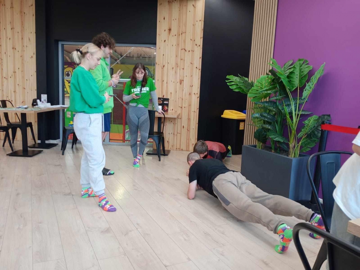 Zajęcia sportowe w GoJump oraz gra Biznes i zarządzanie.