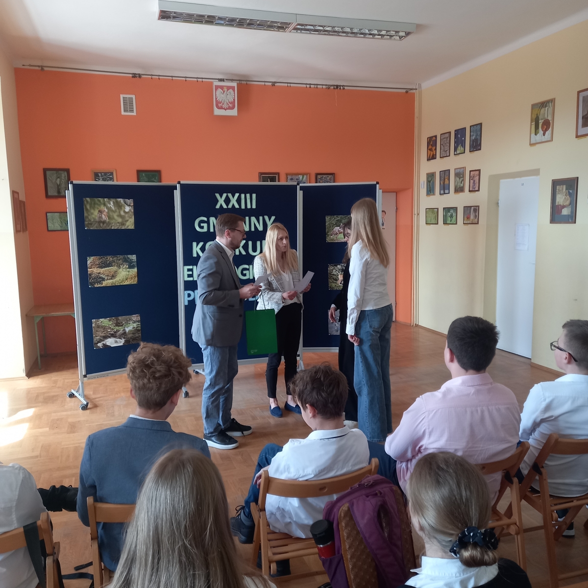 W dniu dzisiejszym uczniowie naszej szkoły uczestniczyli w gminnym konkursie przyrodniczo - ekologicznym. Celem konkursu było: pogłębianie wiedzy z przedmiotów przyrodniczych, kształtowanie postaw i zachowań proekologicznych, kształtowanie świadomości o konieczności ochrony zasobów przyrody i różnorodności biologicznej.