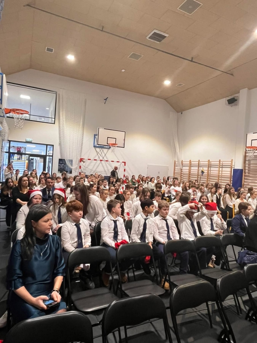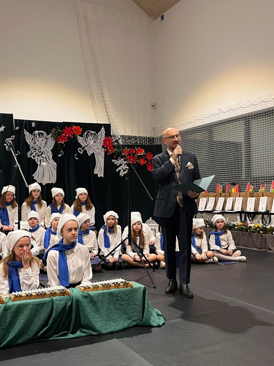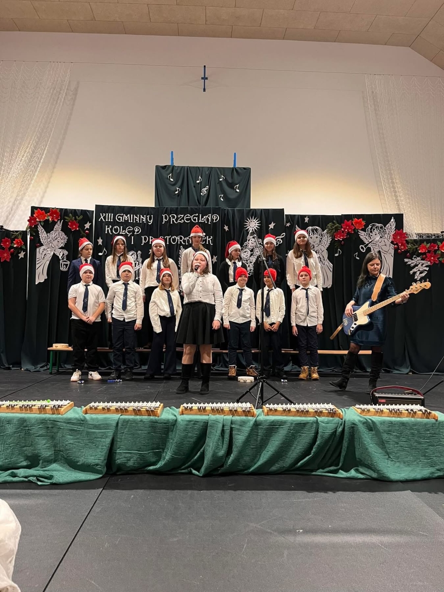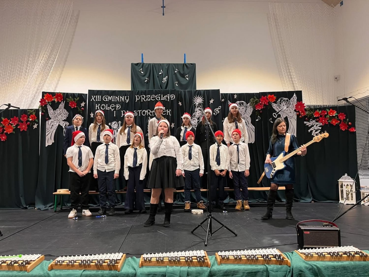 Uczniowie pięknie się zaprezentowali, ochoczo przygrywając na instrumentach perkusyjnych podczas "Przybieżeli do Betlejem", a solistka Karolina wspaniale popisała się w piosence "Do Betlejemu".