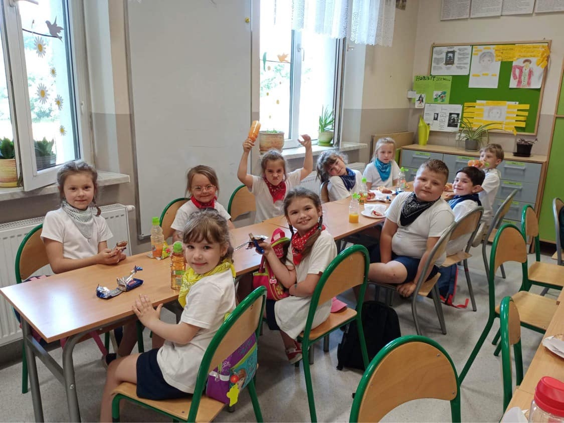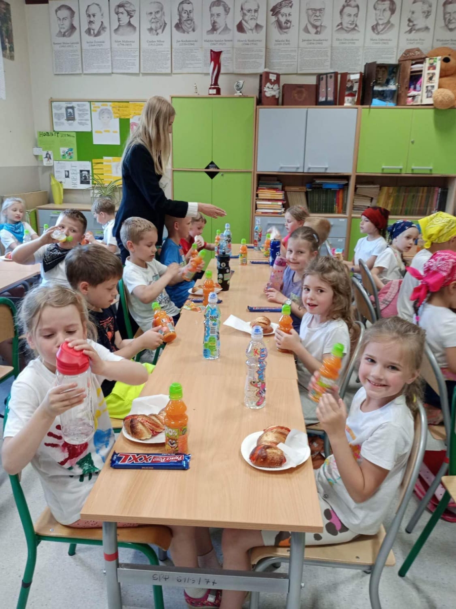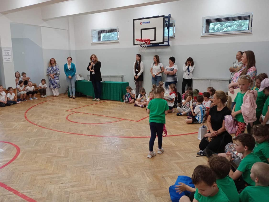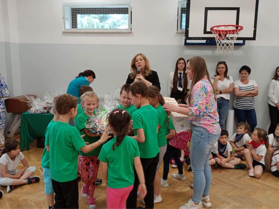 Z tej okazji do naszej szkoły zawitały przedszkolaki z 8 szkół z naszej gminy. I tak gościliśmy reprezentantów: Szkoły Podstawowej im. św. Matki Teresy z Kalkuty w Cholerzynie, Szkoły Podstawowej im. Antoniego Sewiołka w Czułowie, Szkoły Podstawowej im. Ojca Świętego Jana Pawła II w Jeziorzanach, Szkoły Podstawowej nr 1 im. św. Józefa w Kaszowie, Szkoły Podstawowej nr 2 im. św. Jadwigi Królowej w Kaszowie, Szkoły Podstawowej im. św. Jana Kantego w Liszkach, Szkoły Podstawowej im. Króla Jana III Sobieskiego w Rącznej oraz Zespołu Szkolno - Przedszkolnego w Morawicy.