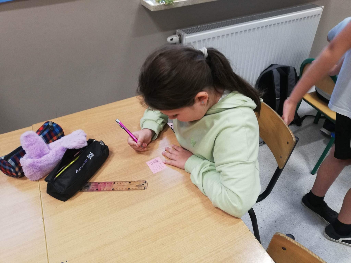 Zabawa polegała na wylosowaniu jednego testu spośród testów o różnym stopniu trudności. Za poprawne uzupełnienie wszystkich pięciu brakujących liczb uczniowie otrzymywali tytuł Eksperta Tabliczki Mnożenia oraz słodki upominek.
