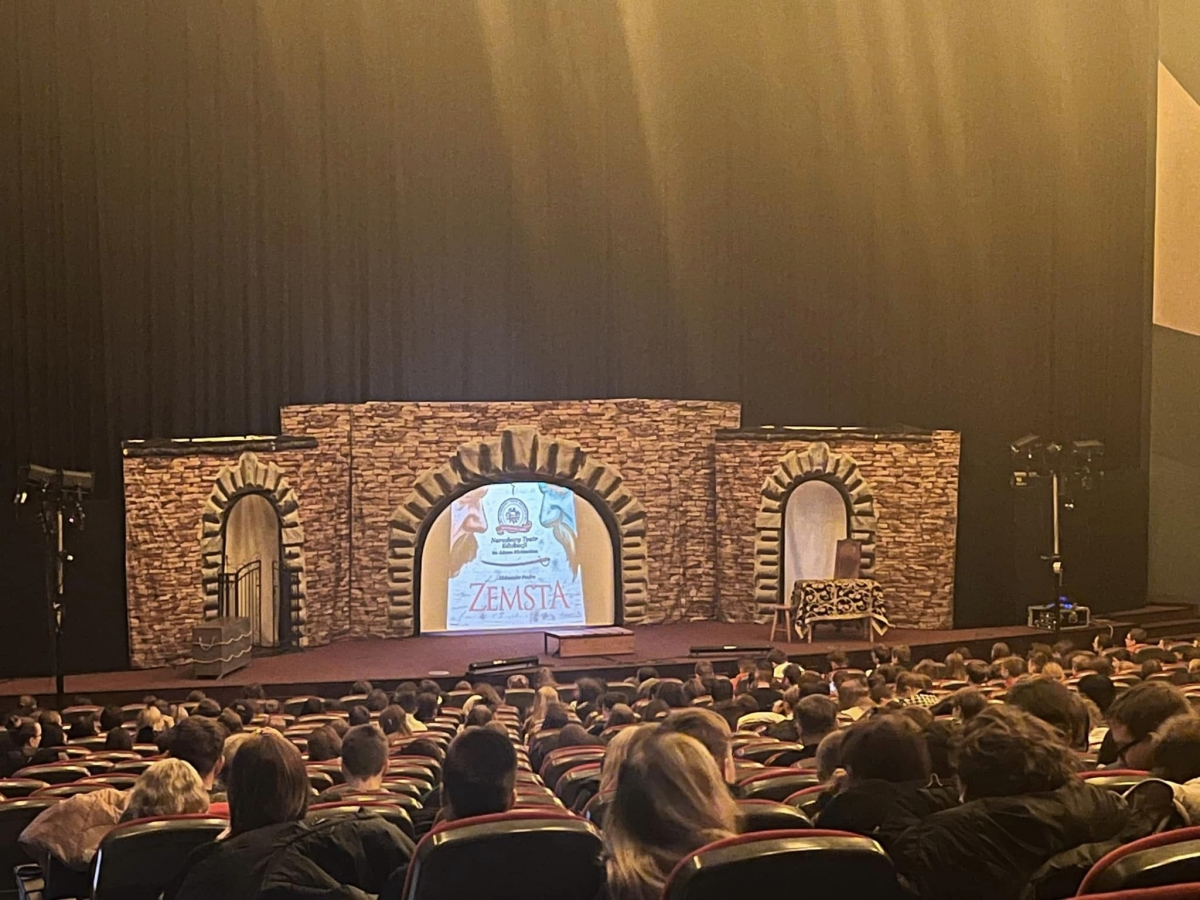 7 lutego 2024 roku uczniowie klas szóstej, siódmej i ósmej naszej szkoły mieli okazję obejrzeć „Zemstę”, najczęściej wystawianą w historii polskiego teatru sztukę hrabiego Aleksandra Fredry w inscenizacji Narodowego Teatru Edukacji im. Adama Mickiewicza we Wrocławiu.