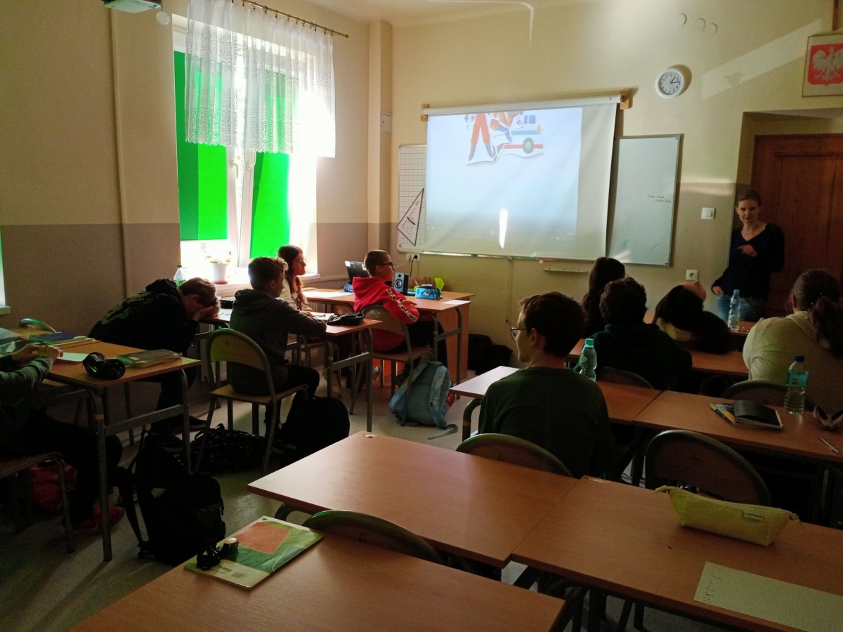 26 października uczniowie klasy VIII brali udział w warsztatach prowadzonych w ramach zajęć profilaktycznych z GOPS-u. Spotkanie prowadziła Pani Joanna Czechowska, absolwentka Szkoły Oficerskiej, gwiazda serialu W-11.