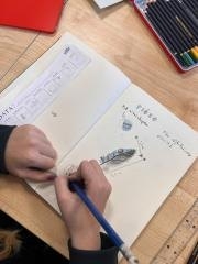 Podczas ostatnich zajęć z przyrodniczych notatników metodą nature Journalingu uczestnicy przyglądali się piórom. Zauważali różnice pomiędzy nimi, zastanawiali się z jakich pochodzą ptaków, czemu je straciły, do jakich części ciała należały, a także mierzyli je i obserwowali pod mikroskopami co kryje się niewidoczne dla nas gołym okiem. Powstały kolejne strony pełne przyrodniczych przeżyć, rozważań, spostrzeżeń i rysunków. Do wyboru były maleńkie pióra sójek, ogromne pióra puszczyka, dzięciołów a także ptaków wodnych.