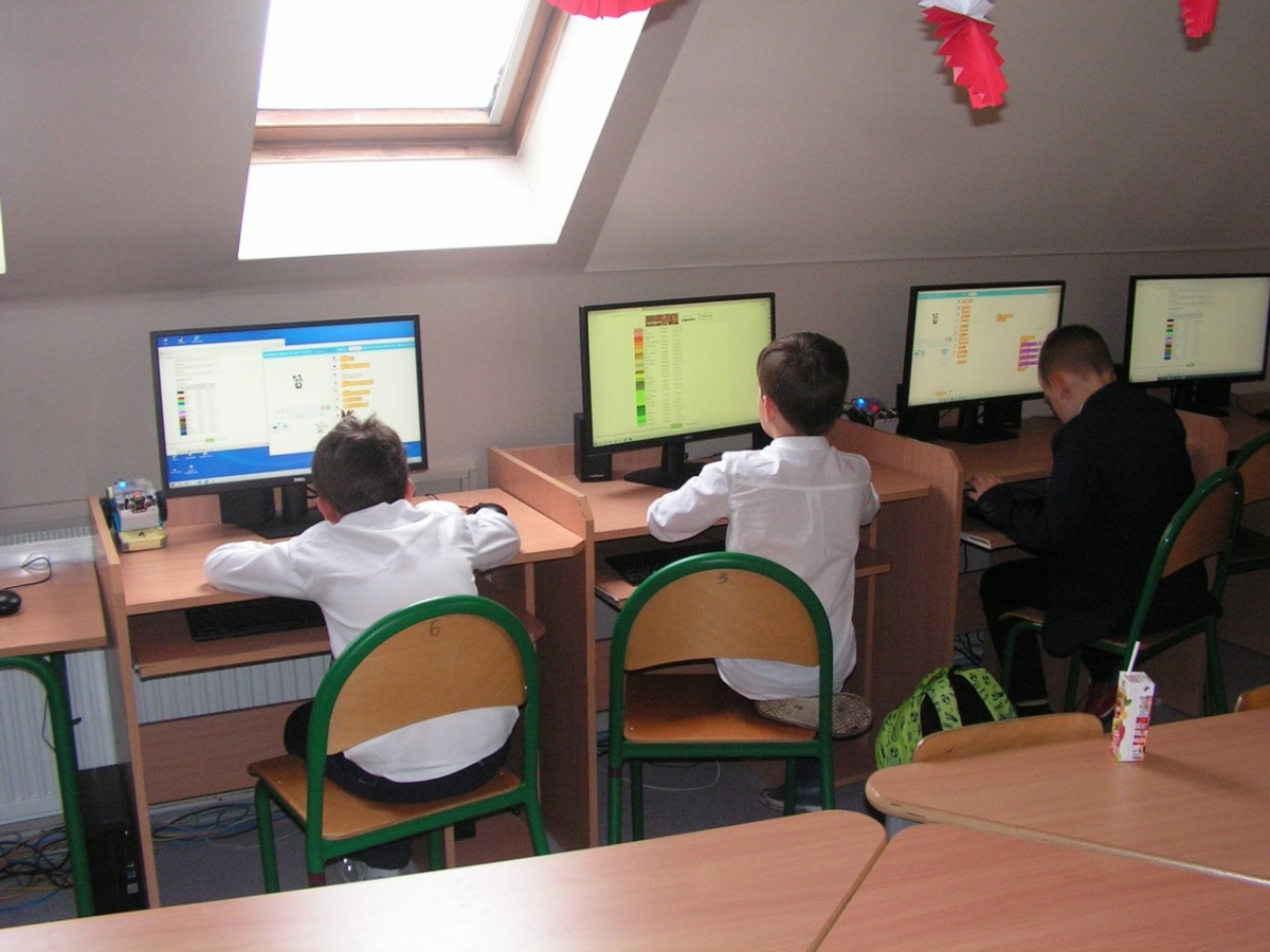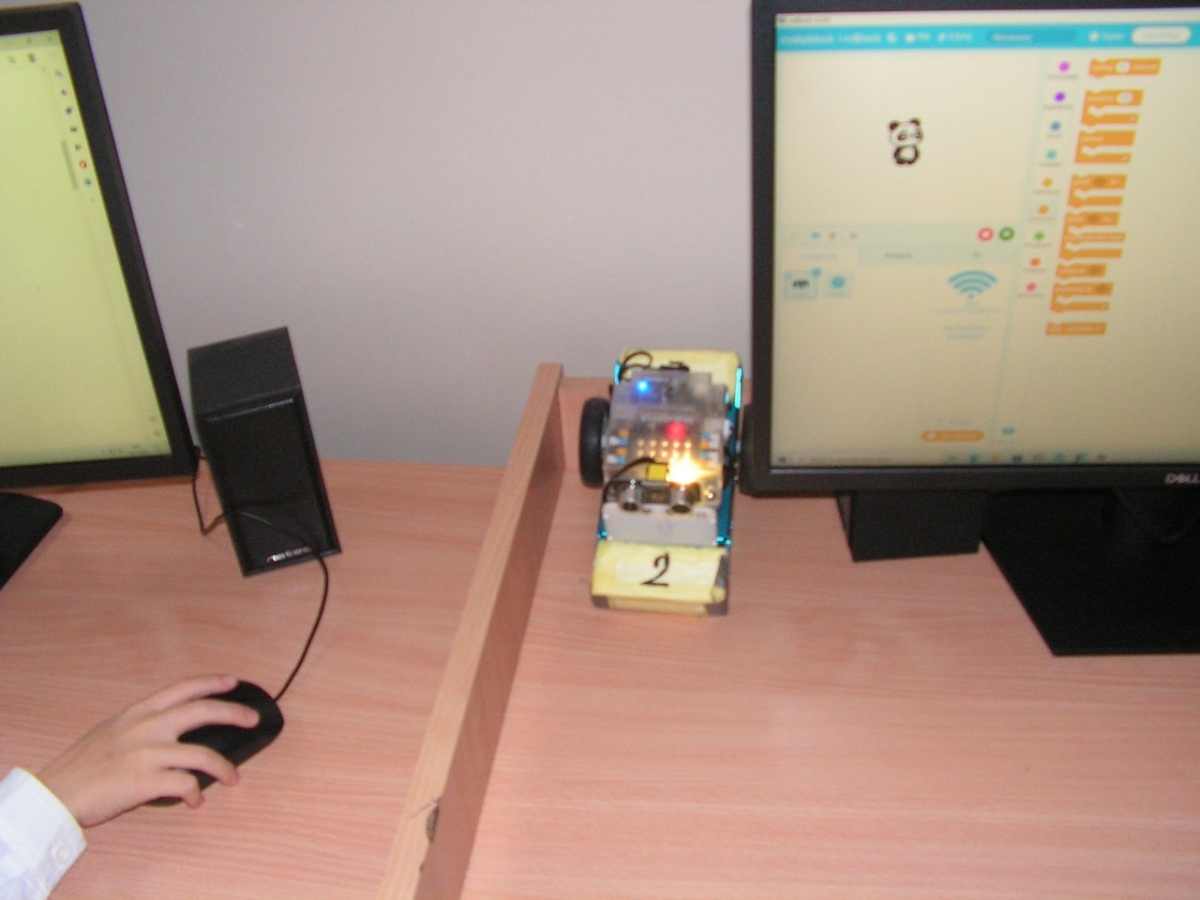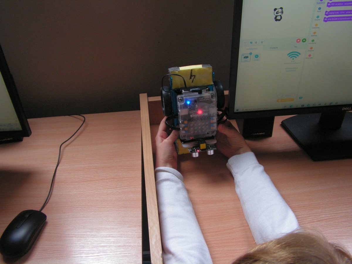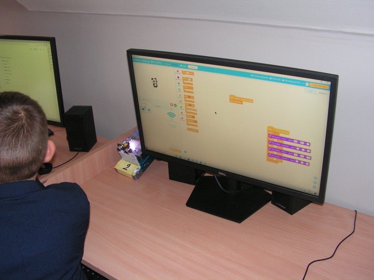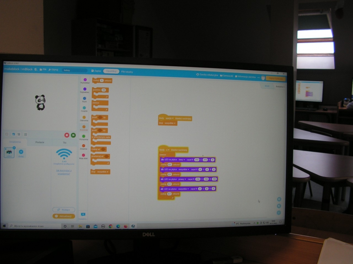 10.11 2022r. na zajęciach z robotyki w programie mBlock uczniowie programowali roboty tak, by naprzemiennie migały diodami w kolorze czerwonym, zielonym i niebieskim. Nauczyli się także programować inne kolory z palety RGB stosując odpowiedni kod. Mogli zaprogramować dowolny np. złoty, srebrny, purpurowy, bądź inny egzotyczny kolor.