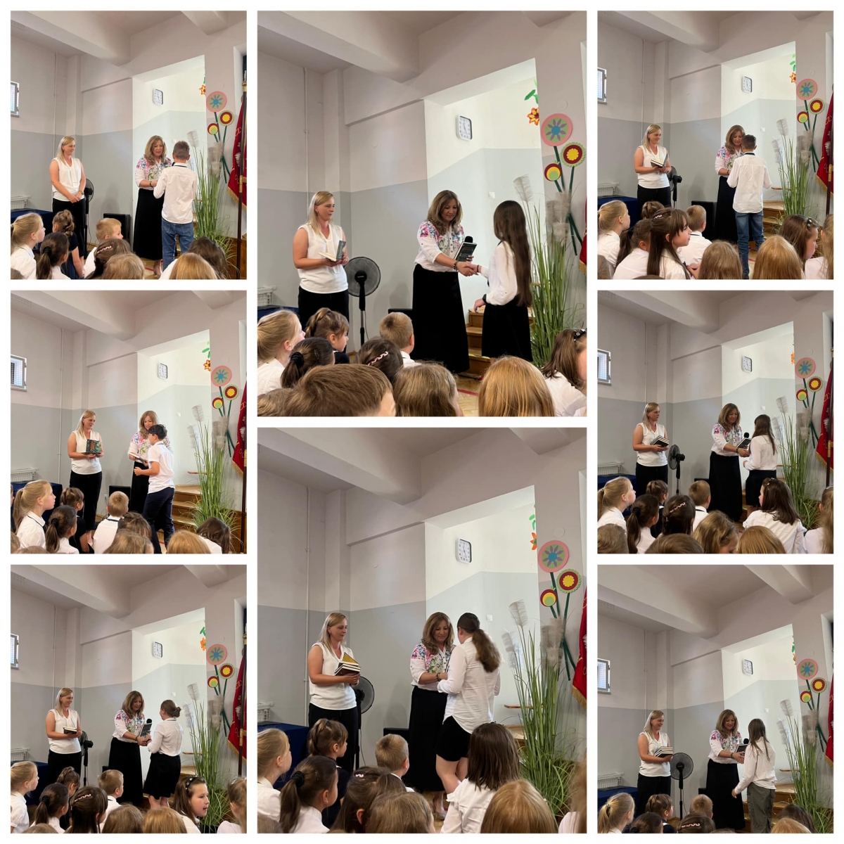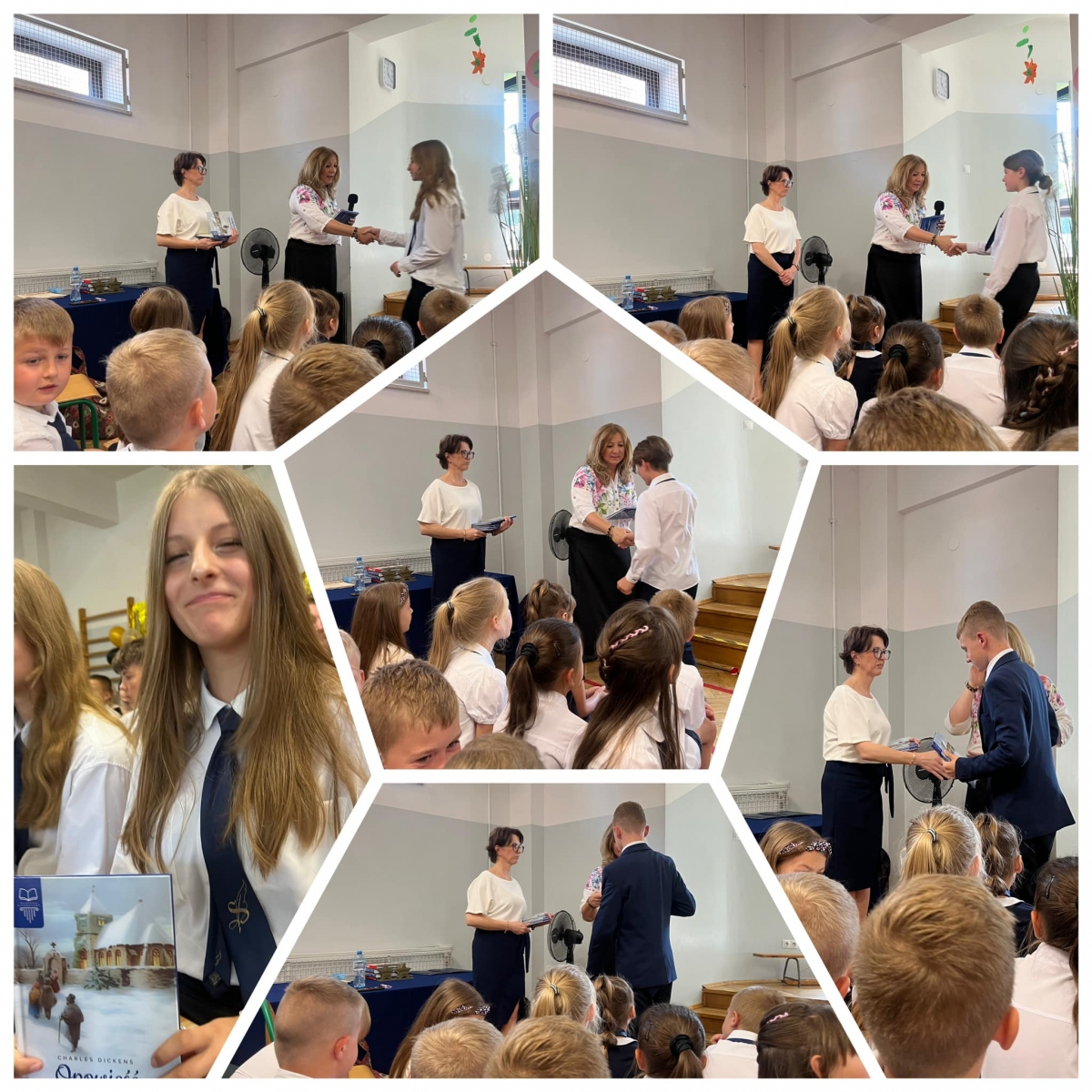 W tym dniu zostały wręczone nagrody książkowe za szczególne osiągnięcia w nauce oraz nagrody specjalne. Zaszczytny Tytuł Ucznia Roku otrzymał Jan Barcik z klasy V, Zaszczytny Tytuł Sportowca Roku – Kacper Andrzejewski z klasy VIII, Zaszczytny Tytuł Bohatera Roku – Lucjan Świerta z klasy V. Nagrodę Dyrektora za kulturę osobistą otrzymała Zuzanna Kaleta z klasy IV.