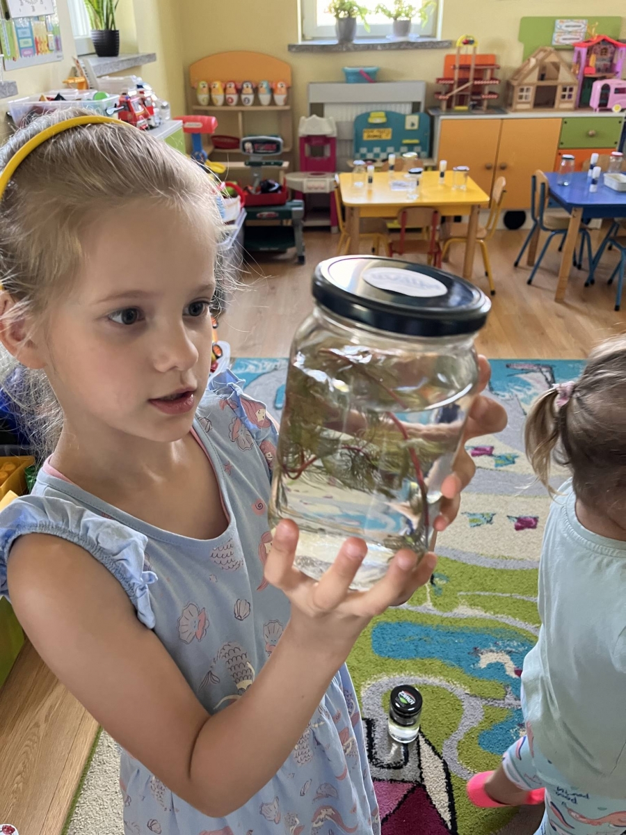 Podczas drugiego spotkania rozmawialiśmy o nadmorskich roślinach i zdolnościach jakie musiały wykształcić, żeby przetrwać w nietypowych, wietrznych i piaskowych warunkach oraz o małżach. Wykonaliśmy proste doświadczenie z szyszką i słoikiem z wodą - pokazujące w jaki sposób sosna chroni swoje nasiona. Dzięki temu dzieci zobaczyły to co zazwyczaj jest skrzętnie schowane w szyszkach. Można było także zobaczyć pod mikroskopem bałtycki piasek oraz muszle. Uczestnicy warsztatów dowiedzieli się, że organizm pozornie prostego małża jest dość skomplikowany oraz zobaczyli sercówki, omułki, płaskołazy i rogowce bałtyckie. Powstały także morskie światy w słoikach.