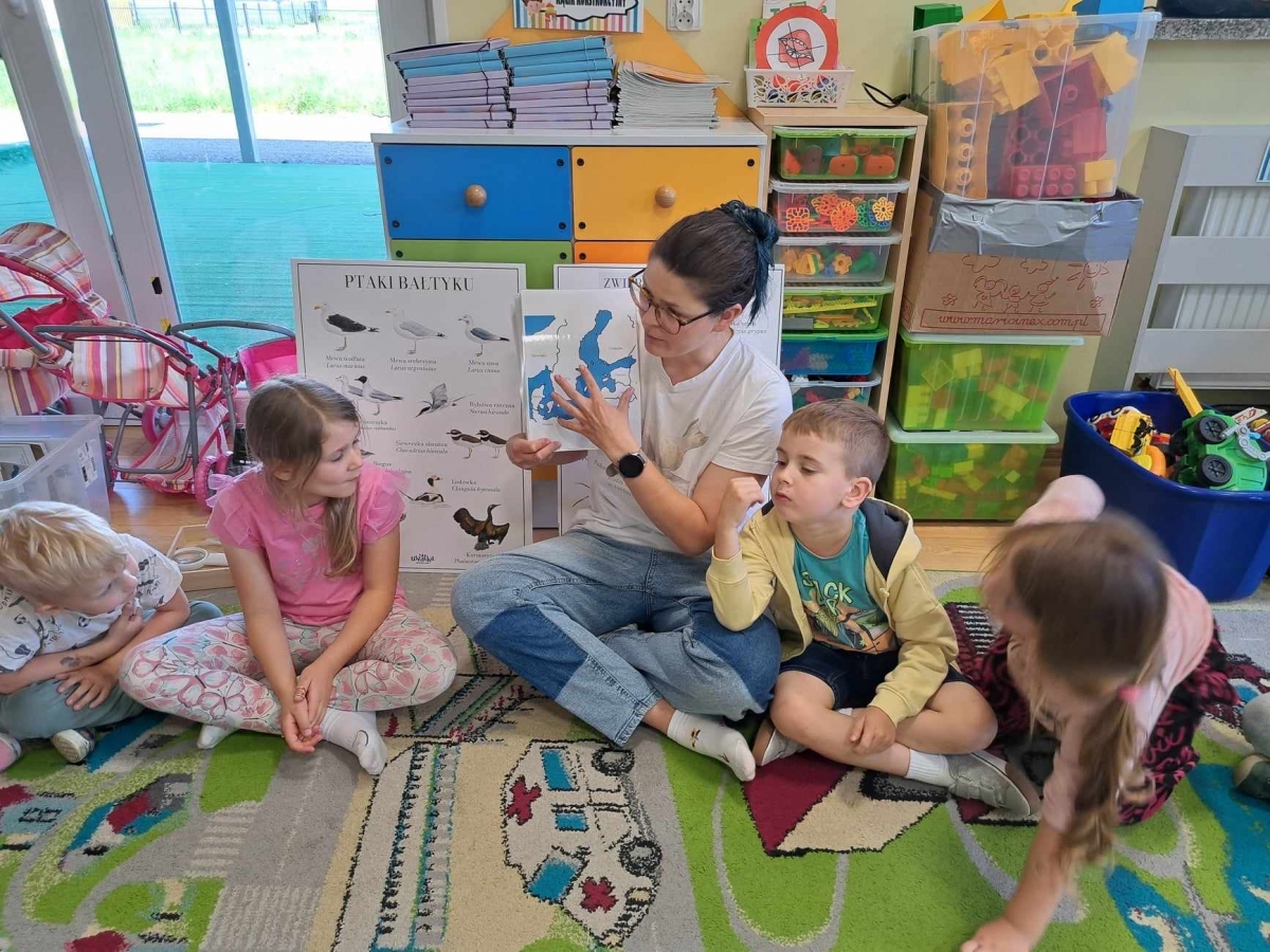 Czerwiec był miesiącem spotkania z naszym polskim morzem. Na pierwszych warsztatach dzieci poznały historię powstania Bałtyku oraz zwierzęta w nim mieszkające. Porozmawialiśmy o mewach, trudnościach w ich identyfikacji, o fokach, o tym jak mewa pospolita zmieniła nazwę na siwą, o Fokarium na Helu i jego funkcji oraz maleńkim, ale szalenie ważnym dla naszych plaż zmieraczku plażowym. Na koniec powstały ozdobne girlandy ze zwierzętami.