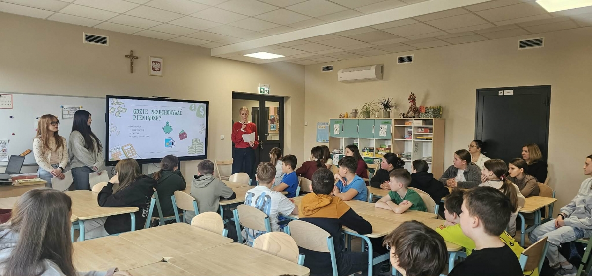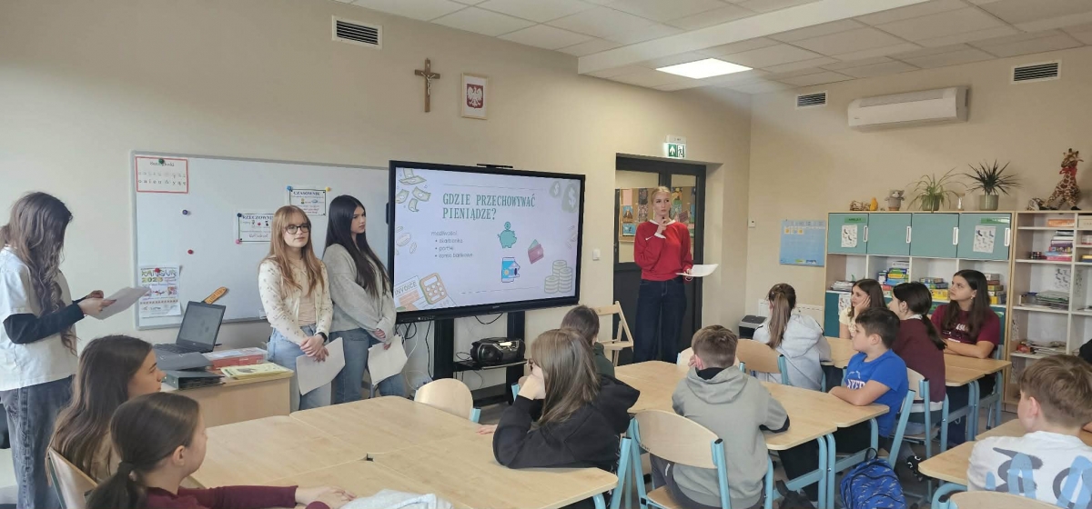 Uczniowie klas V, VI i VIII wzięli udział w zajęciach w ramach ogólnopolskiej inicjatywy „Złote Szkoły NBP”, której celem jest popularyzacja wiedzy ekonomicznej wśród młodych ludzi.