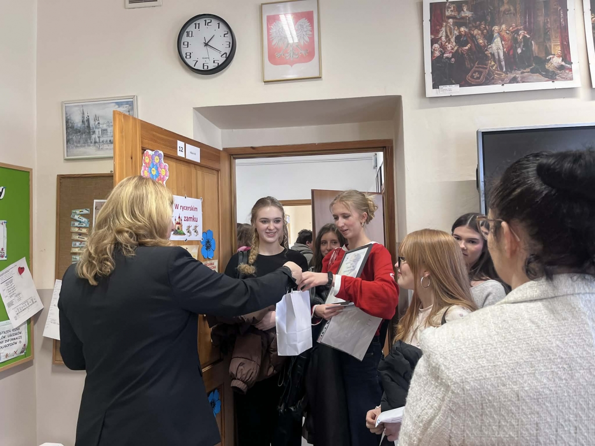Na zakończenie uczniowie sprawdzili swoją wiedzę w quizie na Kahoot, a każdy uczestnik otrzymał pamiątkowy słodki „pieniążek”.