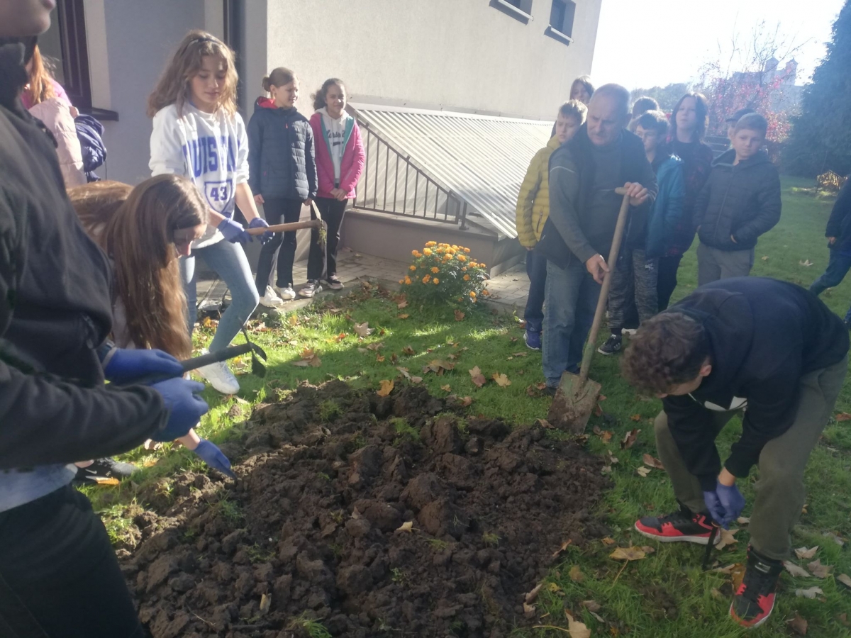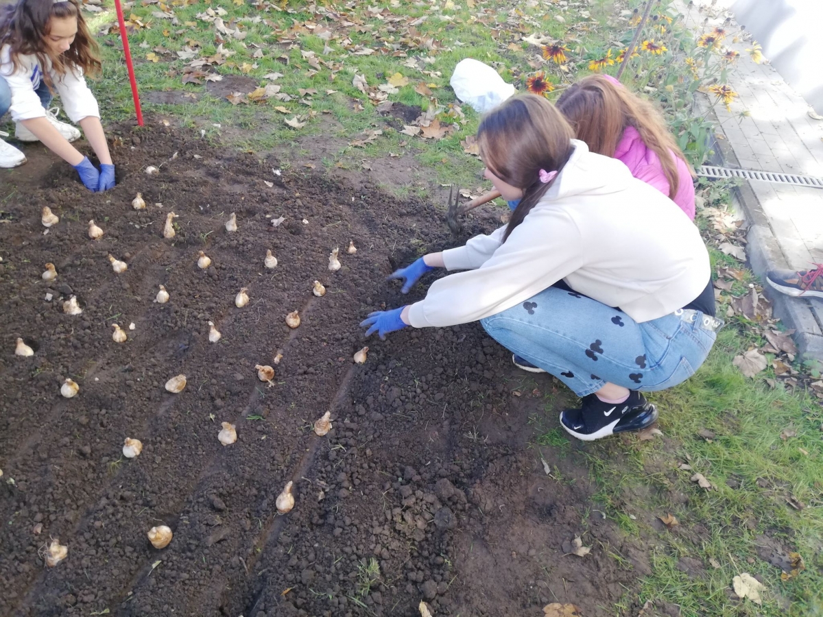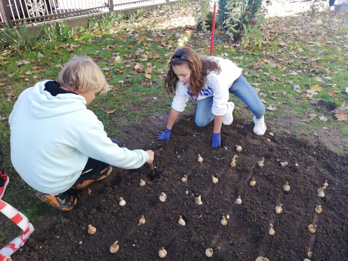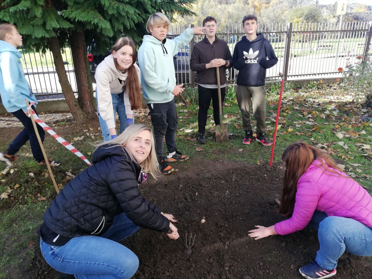 Nasi uczniowie zakładali żonkilowe rabatki i klomby, okazując w ten sposób swoją sympatię i solidarność z chorymi w hospicjum. Przed wejściem do naszej szkoły powstały rabatki "Żonkilowych Ogrodów Pamięci". Dlaczego żonkile są symbolem kampanii? Ponieważ kwiat ten jest międzynarodowym symbolem nadziei.
